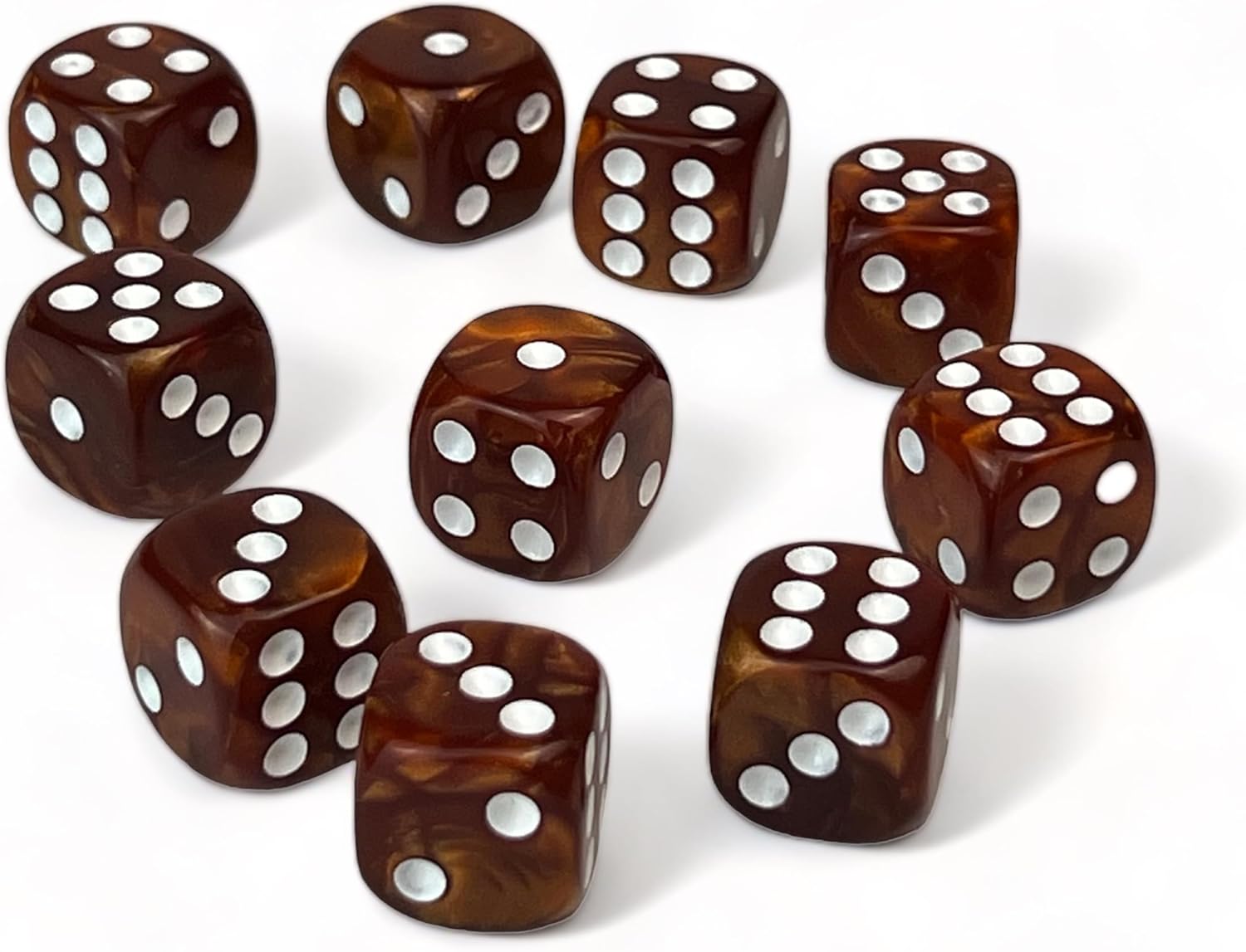 Luck Lab 10 Piece D6 Dice Pack - Acrylic Dice for RPG MTG DND Dice Table Games and Board Games (Brown Pearl)