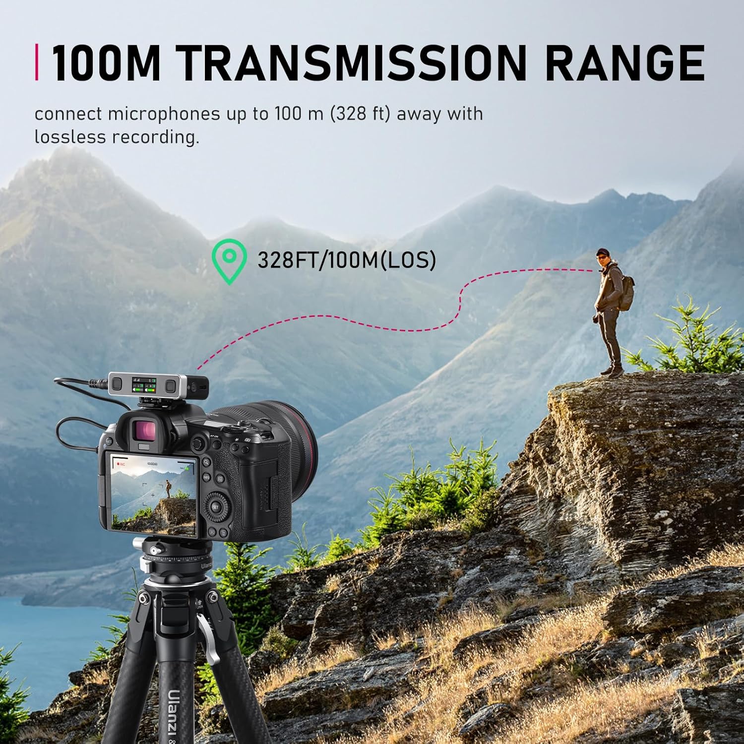 - ă200M Transmission RangeăThe U-Mic records clear audio up to 200m using Ulanzi's secure encryption tech. The optimized wireless transmission ensures stability, even in bustling places like train stations and malls. Operating in the 2.4 GHz frequency band avoids TV and radio interference, offering reliable audio in any environment.