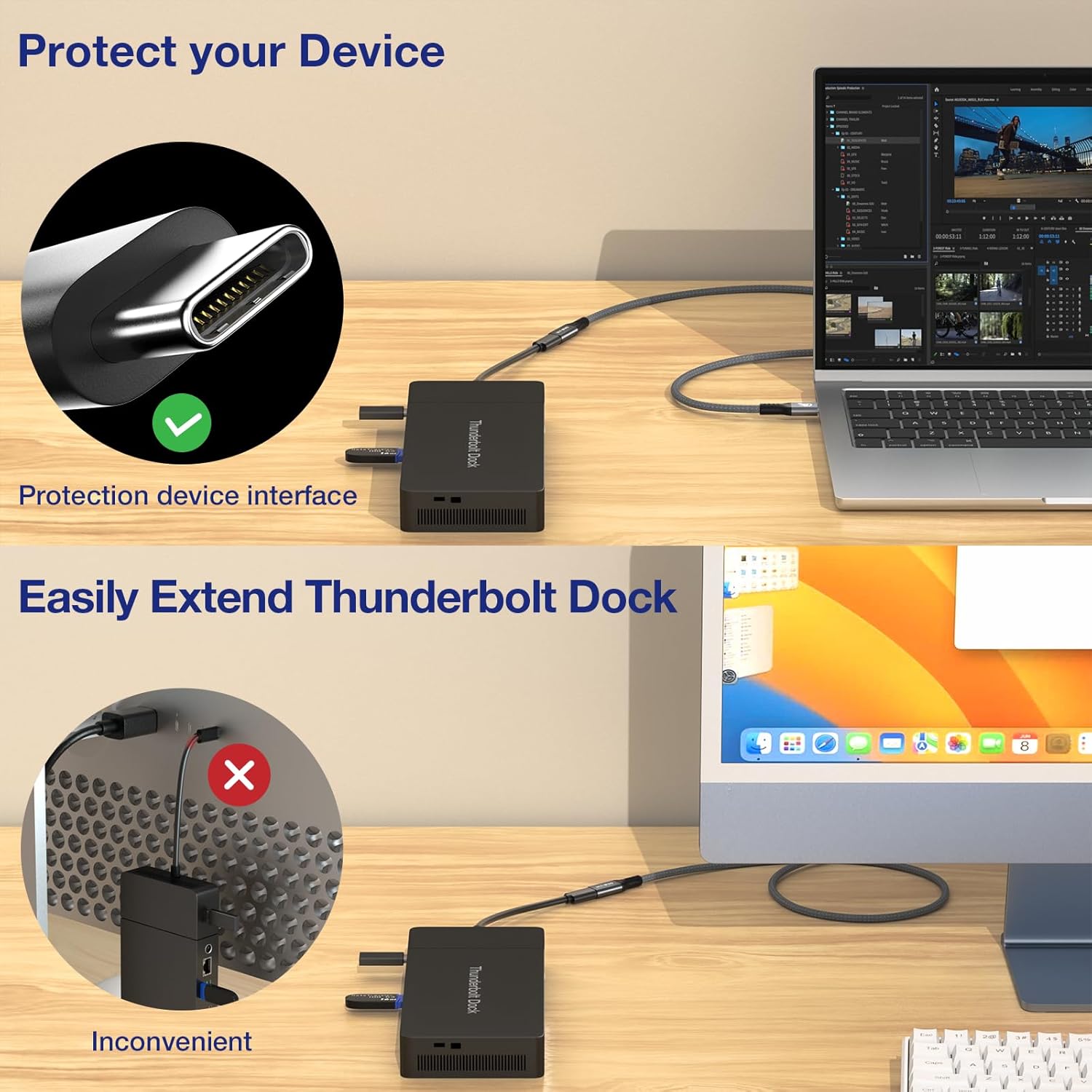 - UHD 8K Video: This Thunderbolt 4 extension cable supports video signal transmission to devices with USB C display function, up to 8K60Hz, 6K60Hz, 5K120Hz, 4K144Hz, etc., and can also drive two 4K@60Hz displays through MST mode. Ultra-high resolution and refresh rate, let you experience every detail.