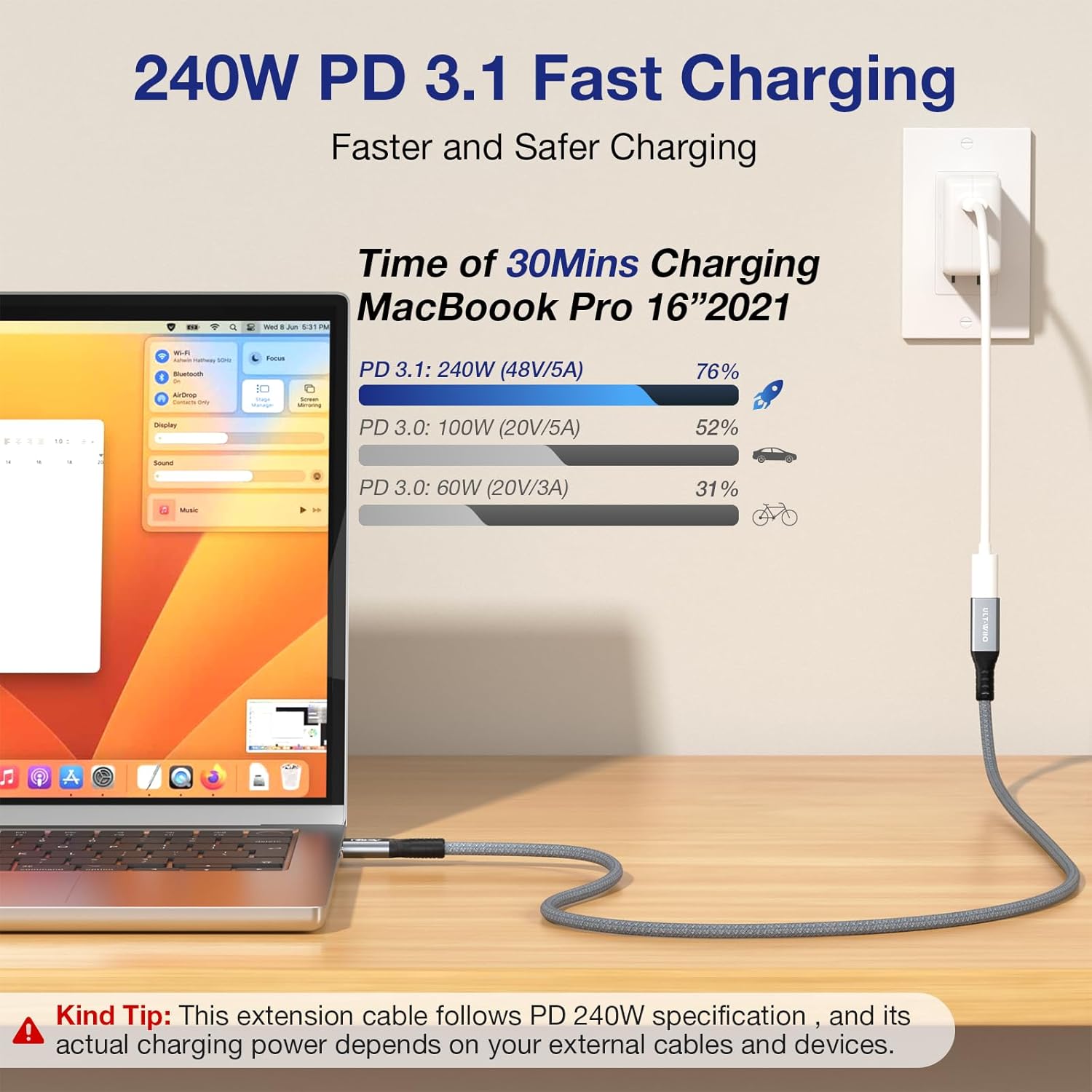 - Special Feature : 240W Fast Charging, 40Gbps High-Speed Data Transfer, 8K UHD Video