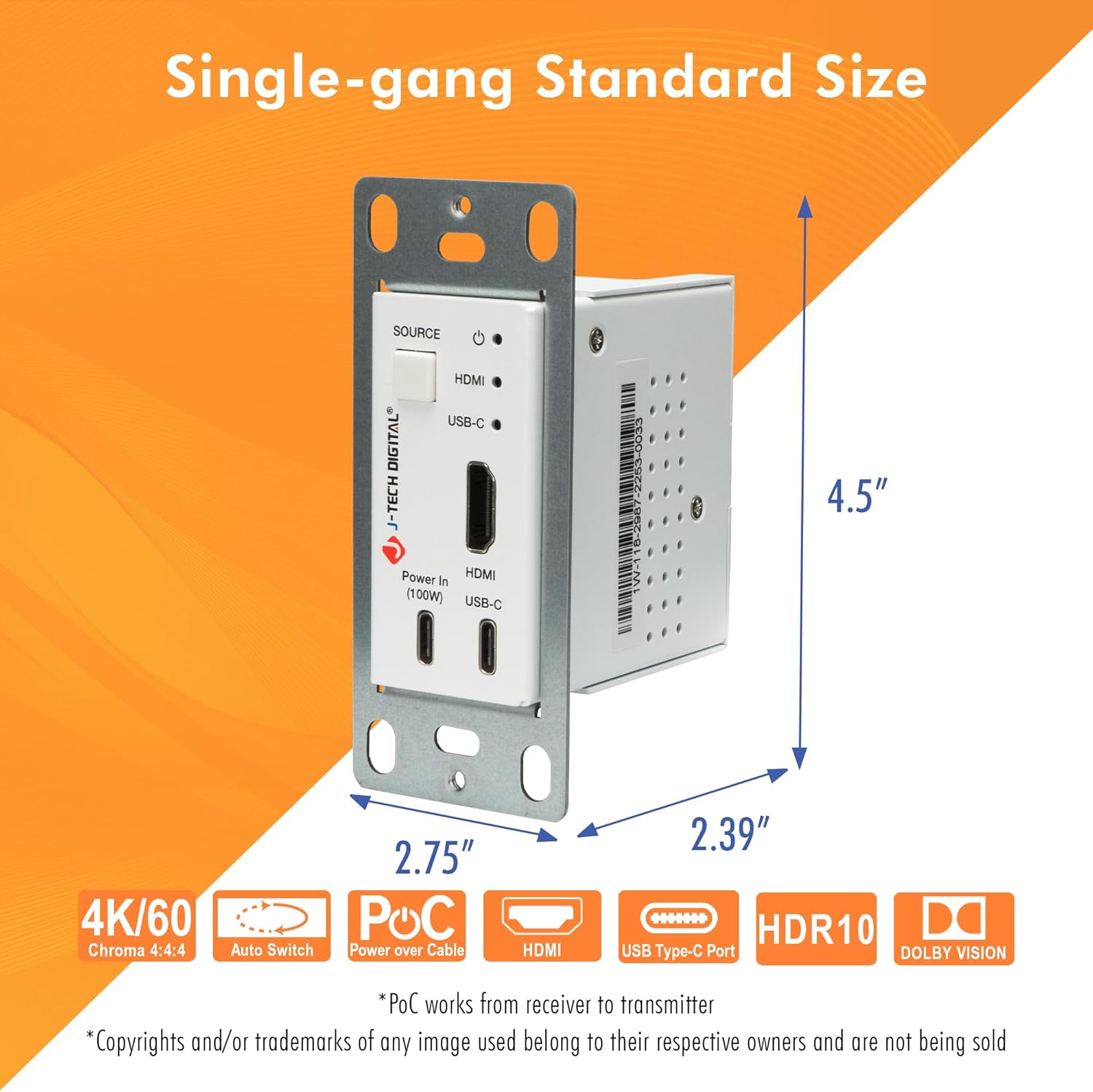 - ๐ ๐๐๐ญ๐ฎ๐ซ๐๐ฌ ๐๐จ๐ / ๐๐จ๐ฎ๐ซ๐๐ ๐๐ฎ๐ญ๐จ-๐๐ฐ๐ข๐ญ๐๐ก โ Power the wall plate transmitter via the receiver unit over Ethernet for convenient install. PoC only works from receiver to transmitter. Supports manual and auto switching between HDMI & USB-C input ports.