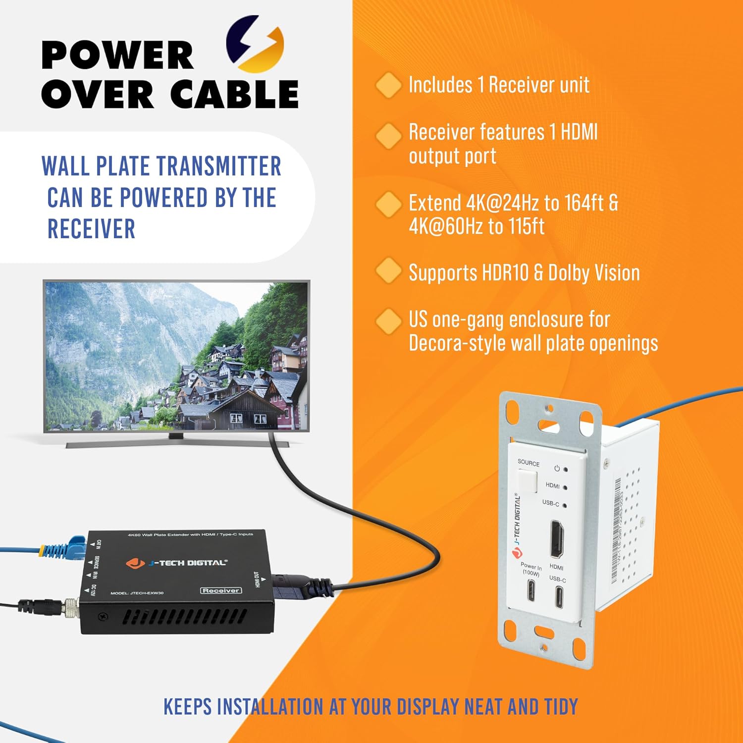 ![J-Tech Digital 4K HDMI & USB C Extender Over Single Cat5 5e 6 7 Cable, Up to 164ft Wall Plate Over Ethernet HDR Dolby Vision USB-C Charging Port, PoC, IR, Auto-Switch [JTECH-EXW30]](http://hey-techs.com/cdn/shop/files/716i9oN7A1L._AC_SL1500.jpg?v=1762938325&width=1445)
