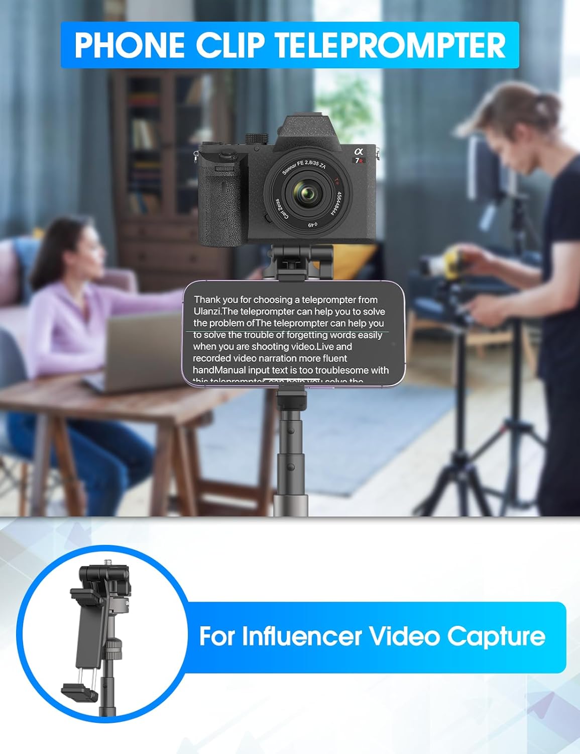 - Innovative Phone Clip Design: ULANZI's first reversible multifunctional mobile phone clip tripod MT-63 can not only be used as a mobile phone teleprompter or mobile phone stand, but can also be folded up and used as a tripod handle, which is very convenient and durable. Clamping range: 55-85mm/2.16"-3.35".