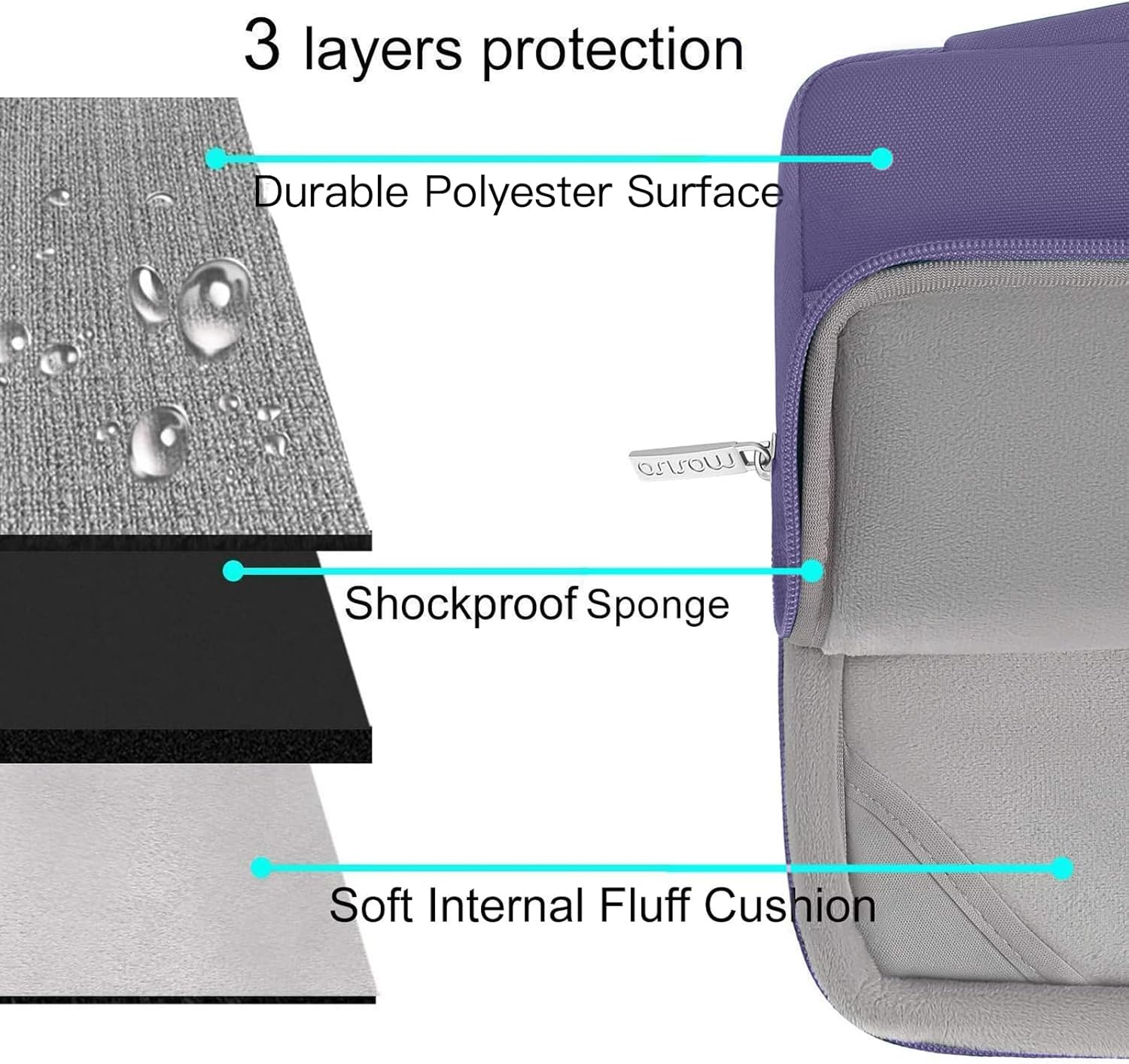 - The 360 degree protective shockproof laptop sleeve with handle carrying bag internal dimension: 13.39 x 9.25 x 0.79 inches (L x W x H); external dimension: 13.98 x 9.84 x 0.79 inches (L x W x H). The front side pocket dimension: 11.61 x 9.25 inches (L x W). Made of polyester material, protect your laptop against accidental spills. Slim and lightweight, does not bulk your device up and can easily slide into your briefcase, backpack or other bag. Ideal for business, daily and travel.