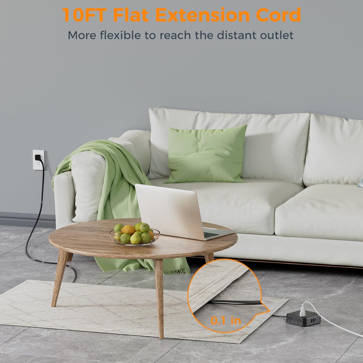 - Flat Plug Power Strip: With only 0.31 inch ultra thin flat plug design design helps you save space and avoid clutter, making it easier to position the power strip in tight spaces