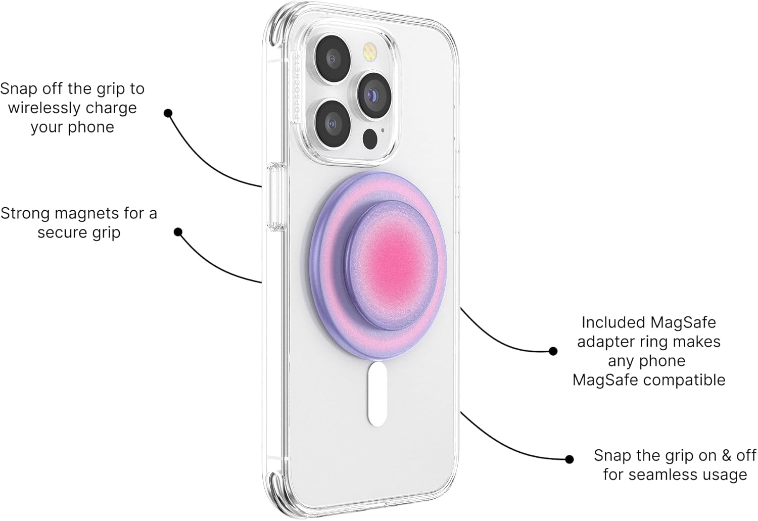 - Better Together: The magnetic Popsocket is compatible with our MagSafe ecosystem of grips, wallets, cases, mounts, and chargers