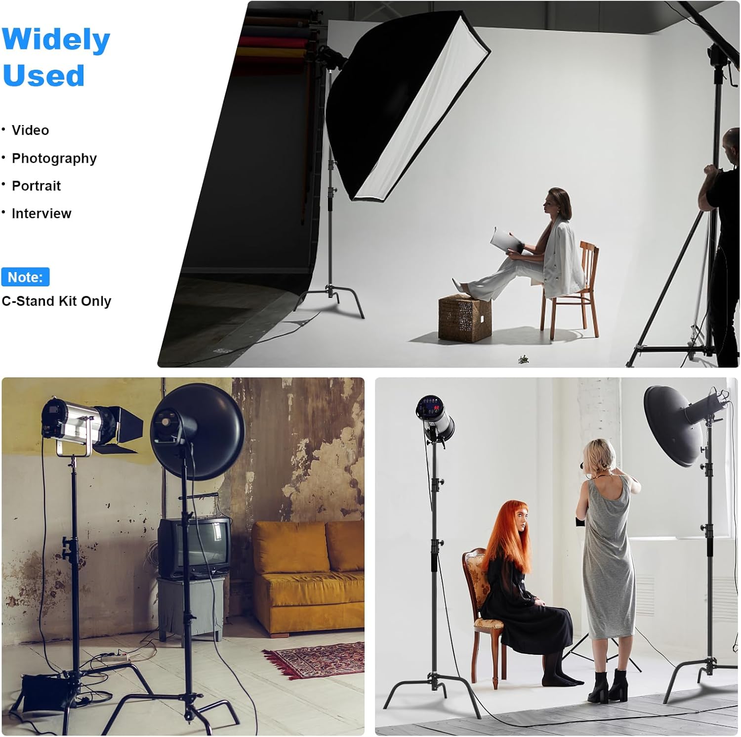 - 【Heavy-Duty Stand& Versatile Function】This photography C-stand made of 100% solid stainless steel, the C-stand with refined design serves long-lasting durability for supporting heavy-duty photographic gears like umbrella, strobe, monolight, reflector, softbox, and camera and flash and more.