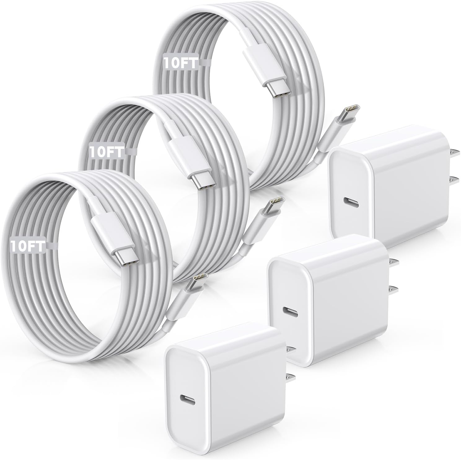 Fast Charger for iPhone 16/15 Charger,10FT Extra Long Fast Charging 3Pack USB-C Wall ChargerBlock USB C To USB C Fast Charging Cable Cord for iPhone 16 Pro Max/iPhone 15 Pro/15 Plus,iPad Pro/Air/Mini