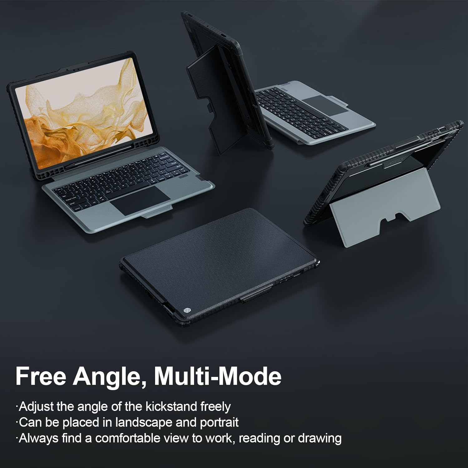 - Free Angle, Multi-Mode - The kickstand offers adjustments from 0°-180°, allowing it to be placed in landscape or portrait mode. Stable and durable, you can find the perfect angle for taking note, watching videos, writing, working, browsing, or drawing. The keyboard can be easily detached to enjoy drawing or playing games.