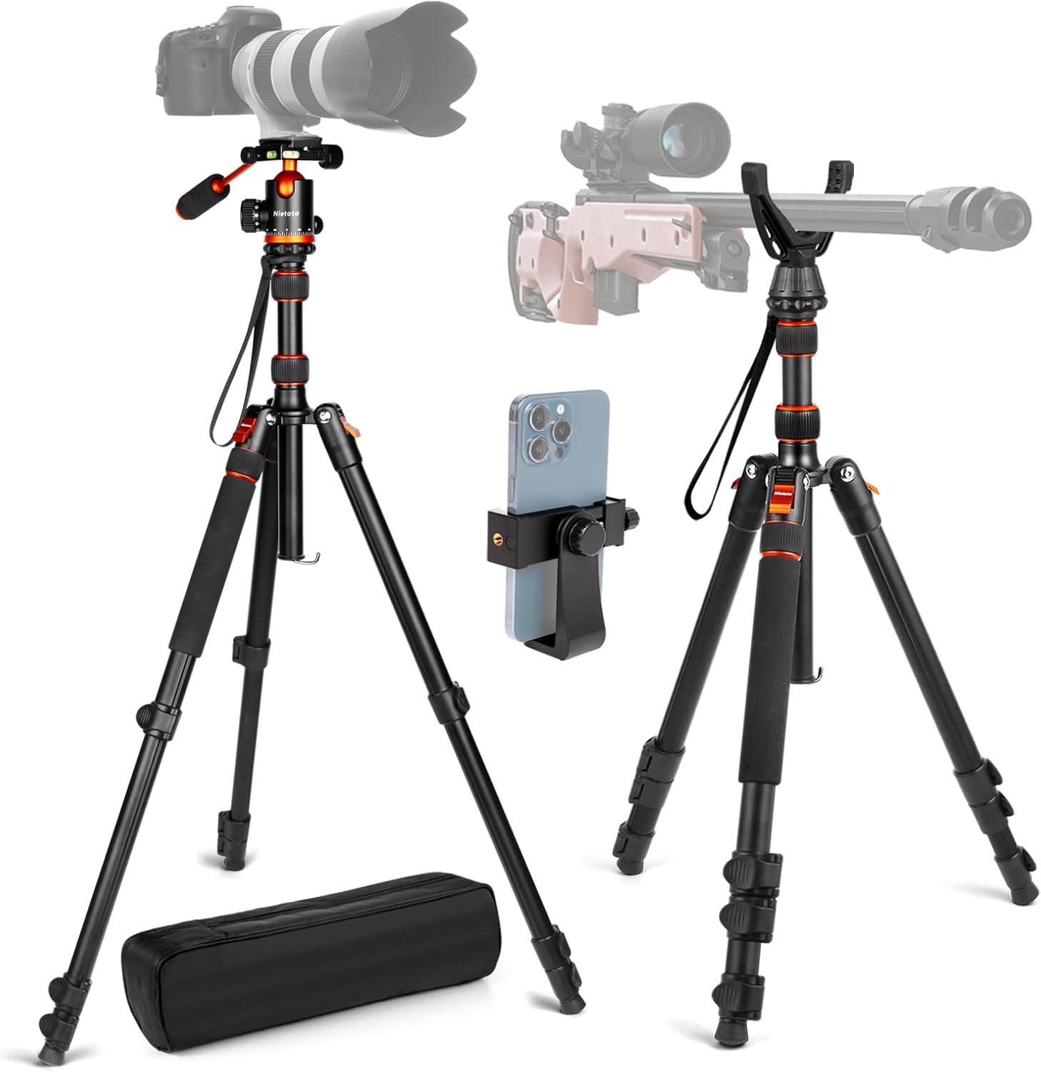 68" Tripod for Camera & Shooting Tripods, 2 in1 Camera Tripods & Monopods with Handle, Aluminum Rifle Tripod & Hunting Stick, Heavy Duty Tripod for DSLR,Canon,Nikon,Sony and Gun,Extra Carry Bag