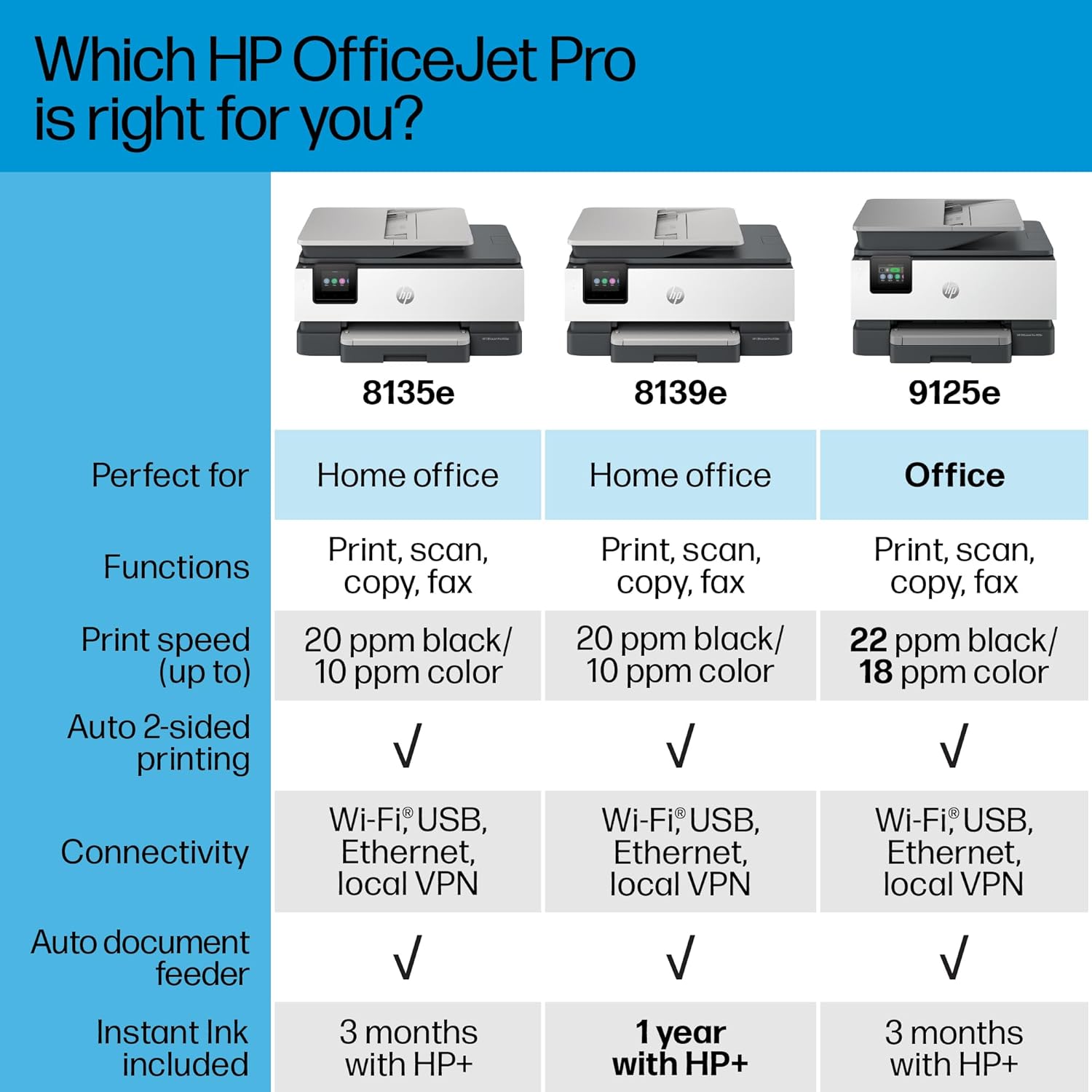- FROM AMERICA'S MOST TRUSTED PRINTER BRAND β The OfficeJet Pro 8139e is perfect for home offices printing quality color documents like business documents, reports, presentations and flyers. Print speeds up to 10 ppm color, 20 ppm black.