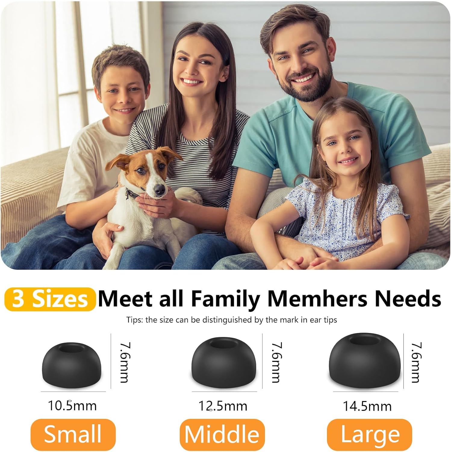 - 【 3 sizes include】Replacement Ear Tips (S/M/L) for AirPods Pro 1nd Generation(2019) AirPods Pro 2nd Generation(2022). 3 Sizes Meet all Family Memhers Needs. (Tips: the size can be distinguished by the mark in ear tips)