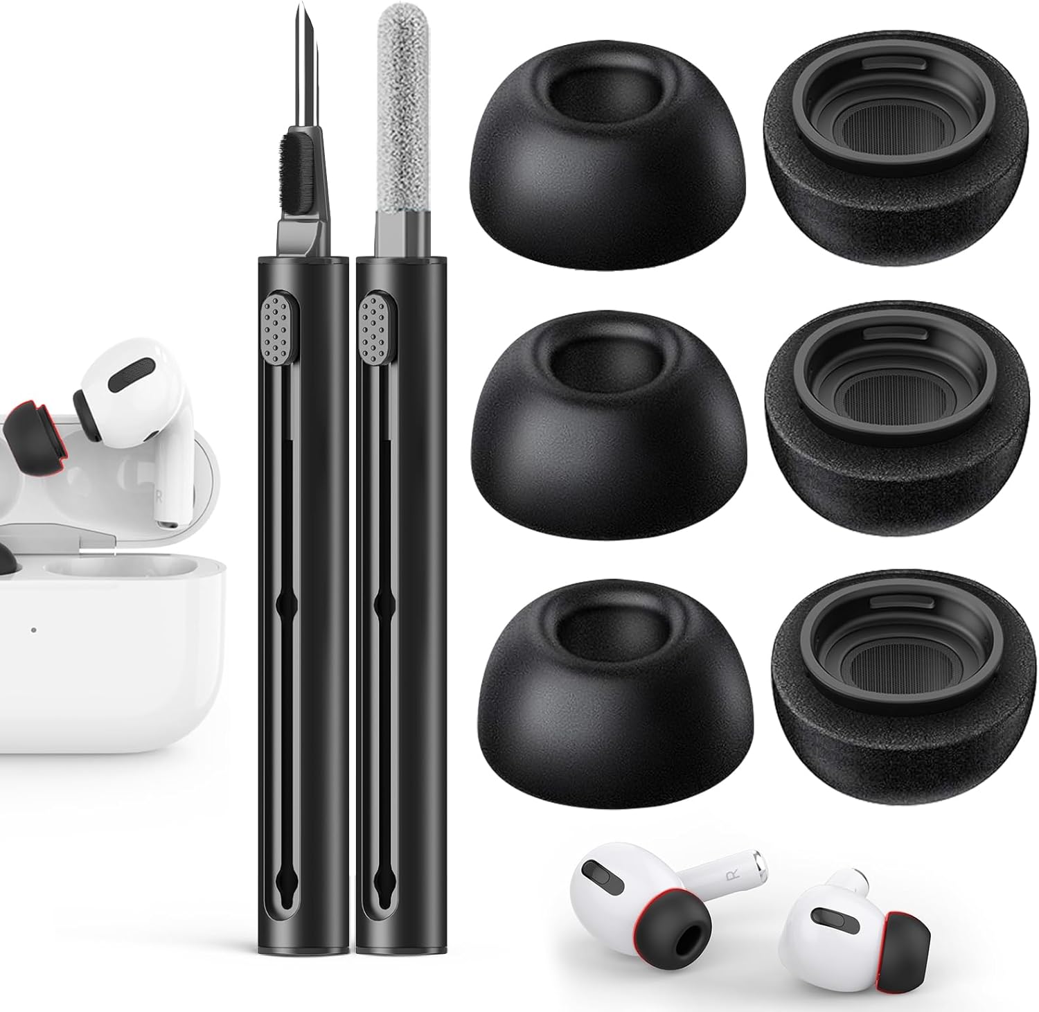 - 【Excellent Customer Service】 3 Pairs white Ear Tips (S/M/L) for AirPods Pro& AirPods Pro 2nd Generation, black Cleaning Pen*1;(We're here to help! Our friendly customer service team is available 24 hours to answer any questions or concerns you may have. In order to continue to provide our customers with high quality products,we also look forward to your comments and ideas on this product)