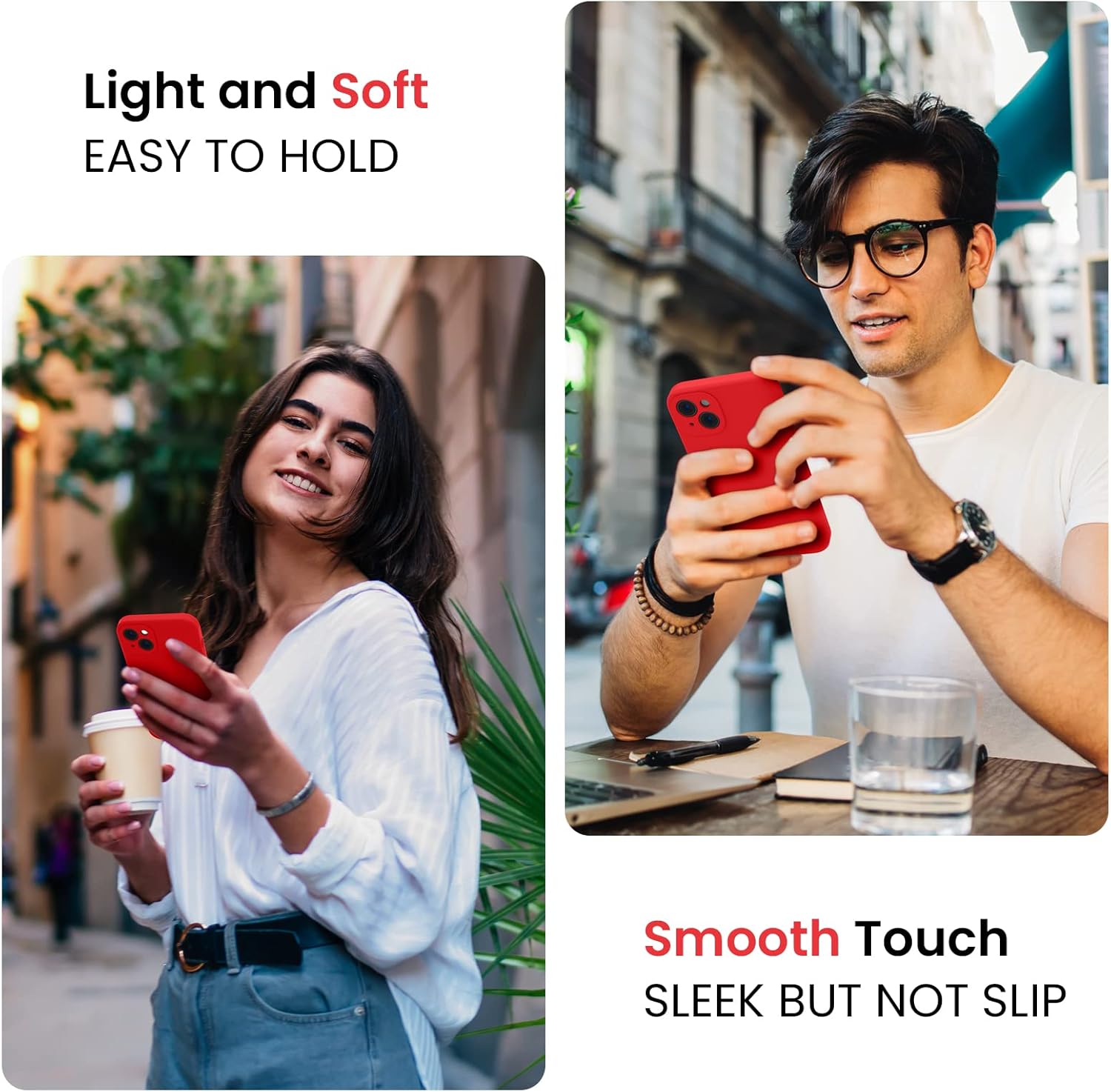 FireNova Designed for iPhone 14 Case, Silicone Upgraded [Camera Protection] Phone Case with [2 Screen Protectors], Soft Anti-Scratch Microfiber Lining Inside, 6.1 inch, Red