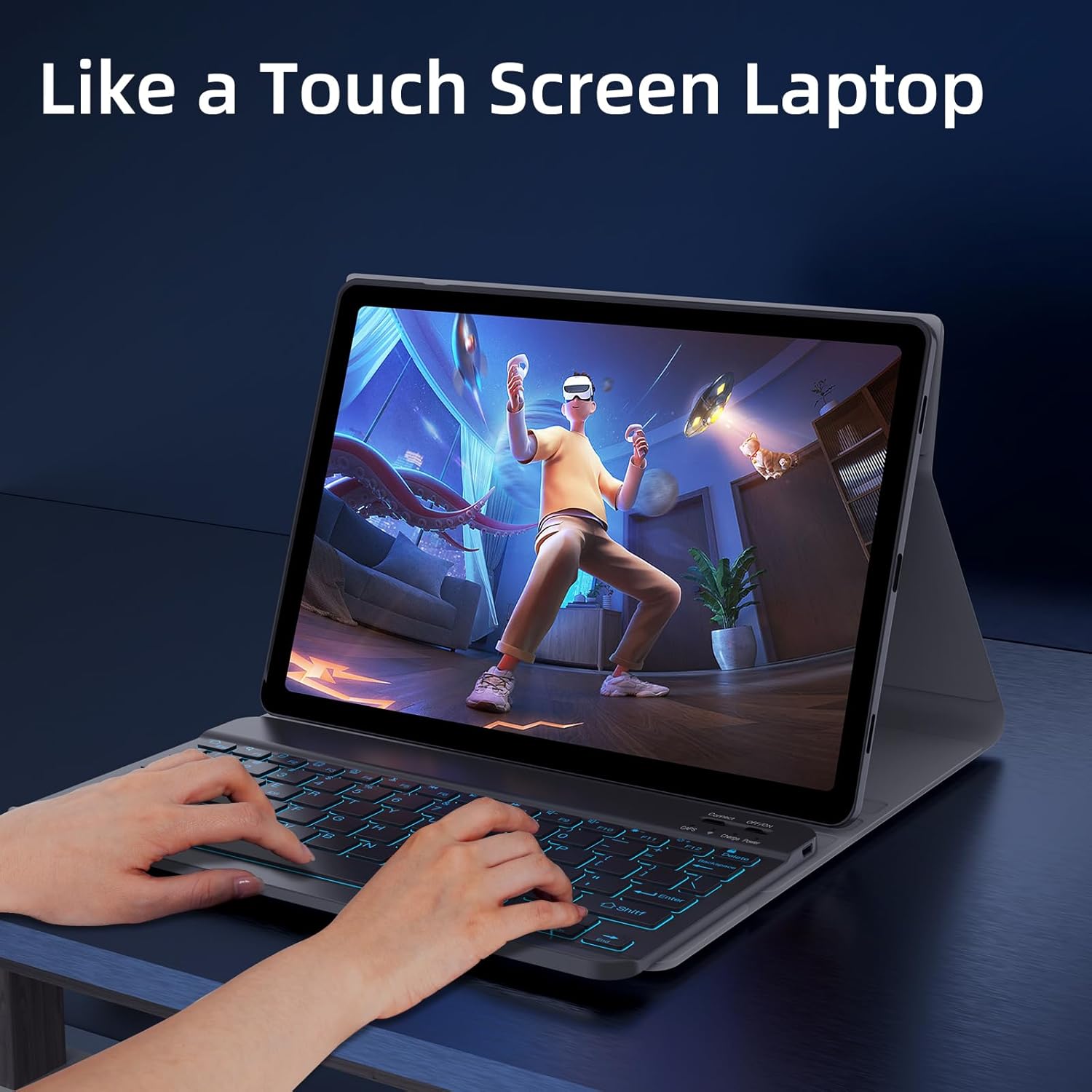 Backlit Keyboard Case for Samsung Galaxy Tab S10 FE/S9 FE 5G 10.9"/ Tab S9 11", Smart Case with 7 Colors Backlight Detachable Wireless Keyboard Cover with S Pen Holder,Magnetic Detachable,Black
