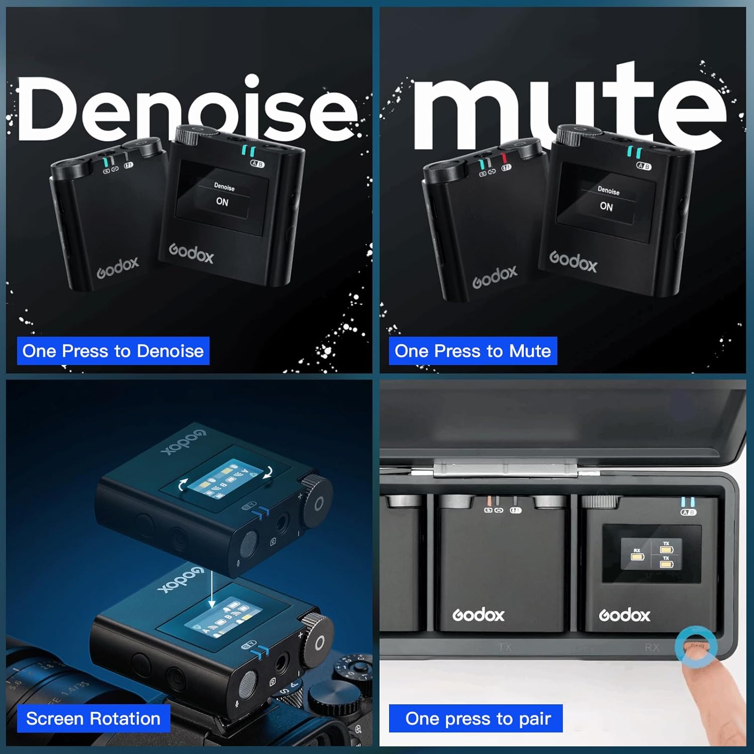 - ✅【Easy Operation】One step to denoise, mute, pair and volume setting. For better using experience, screen rotation is added for easy observation.