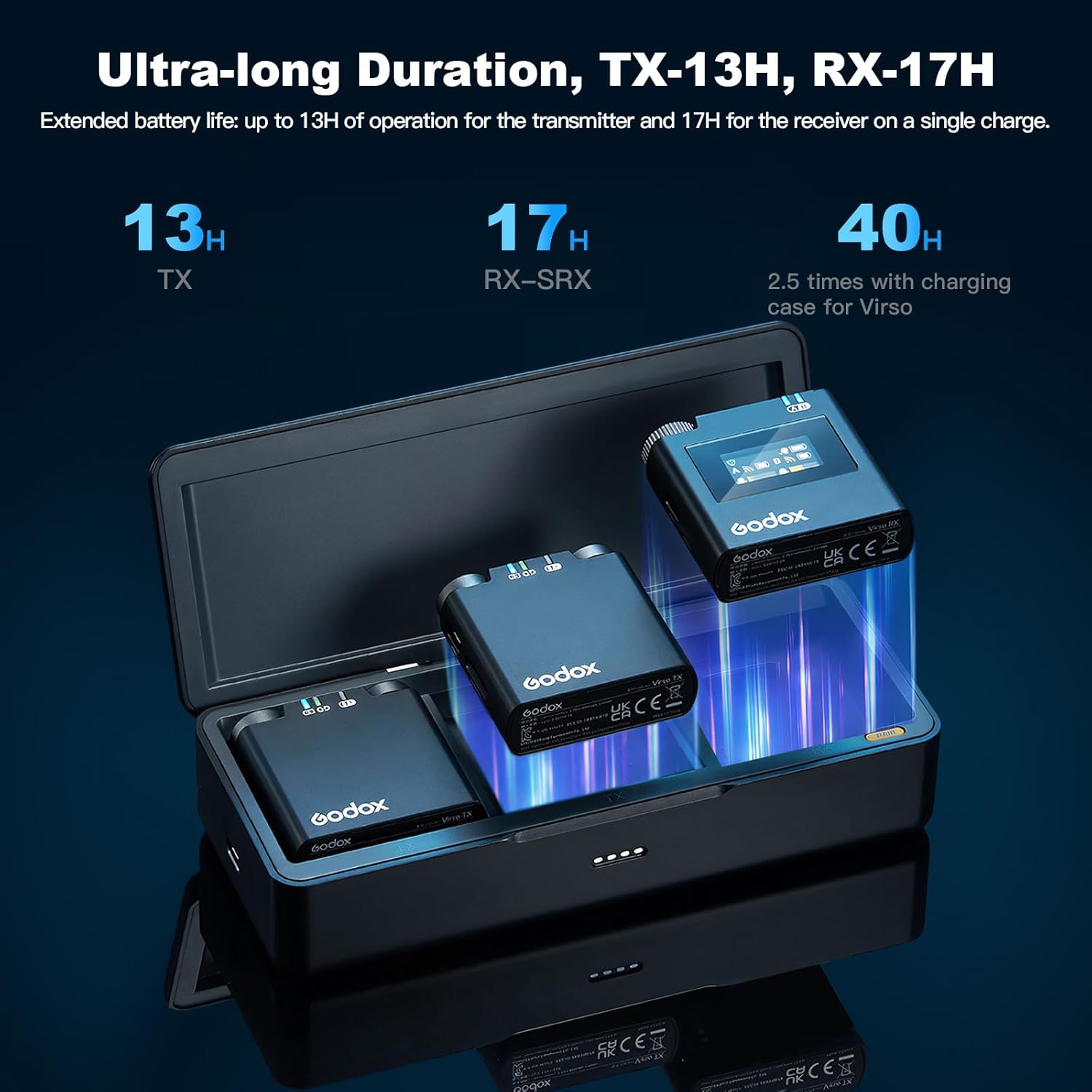 - 🔋【Ultra-long Duration】The system offers extended battery life, with up to 13H of operation for the transmitter and 17H for the receiver on a single charge.