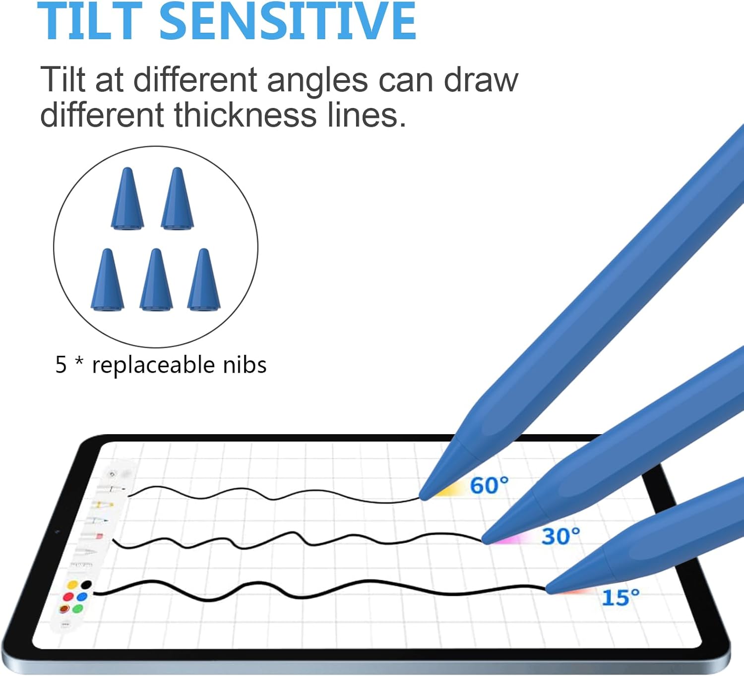 - Tilt Sensitive and High Precisely: The stylus pen for on iPad is sensitive to pressure and tilt, tilt at different angles can draw different strokes of thickness. 1.2mm fine point nib provides precisely and smoothly writing feeling, no noise, no skip, and no lag