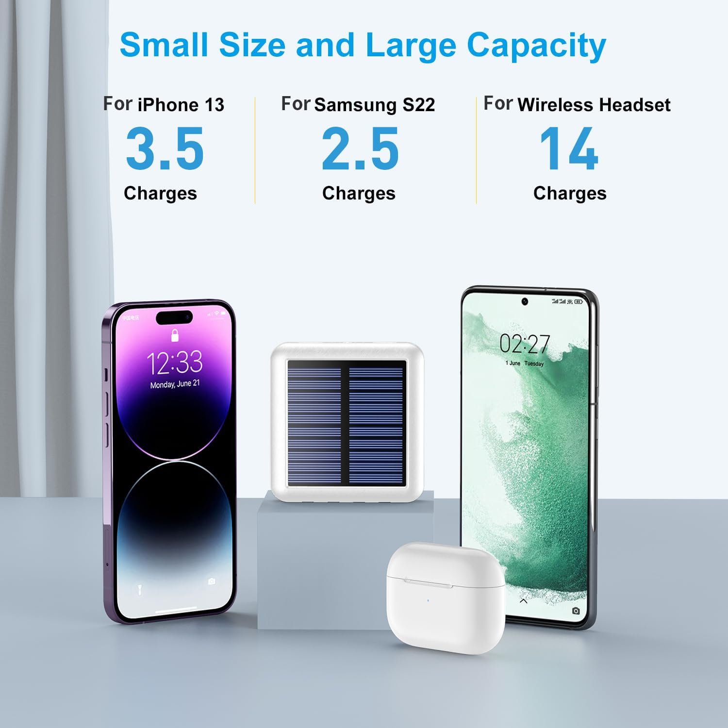 - 【Super Mini】One of the smallest and lightest 12000mAh solar power bank. only 3*3.2*0.8 inch,it's easy to put in your pocket or bag,lanyard design is easy to carry.