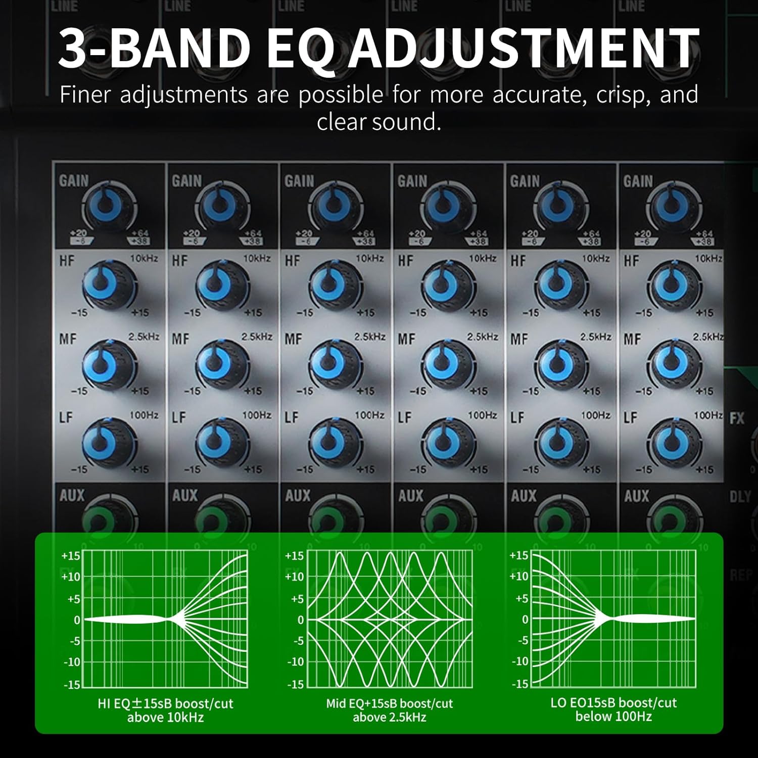 - Highly Accurate LED Indicators: The usb mixer audio interface is equipped with LED indicator lights and rotary adjustment knobs for user convenience. It offers input selection, master volume controls, independent channel balance, and high, mid, and low frequency adjustments