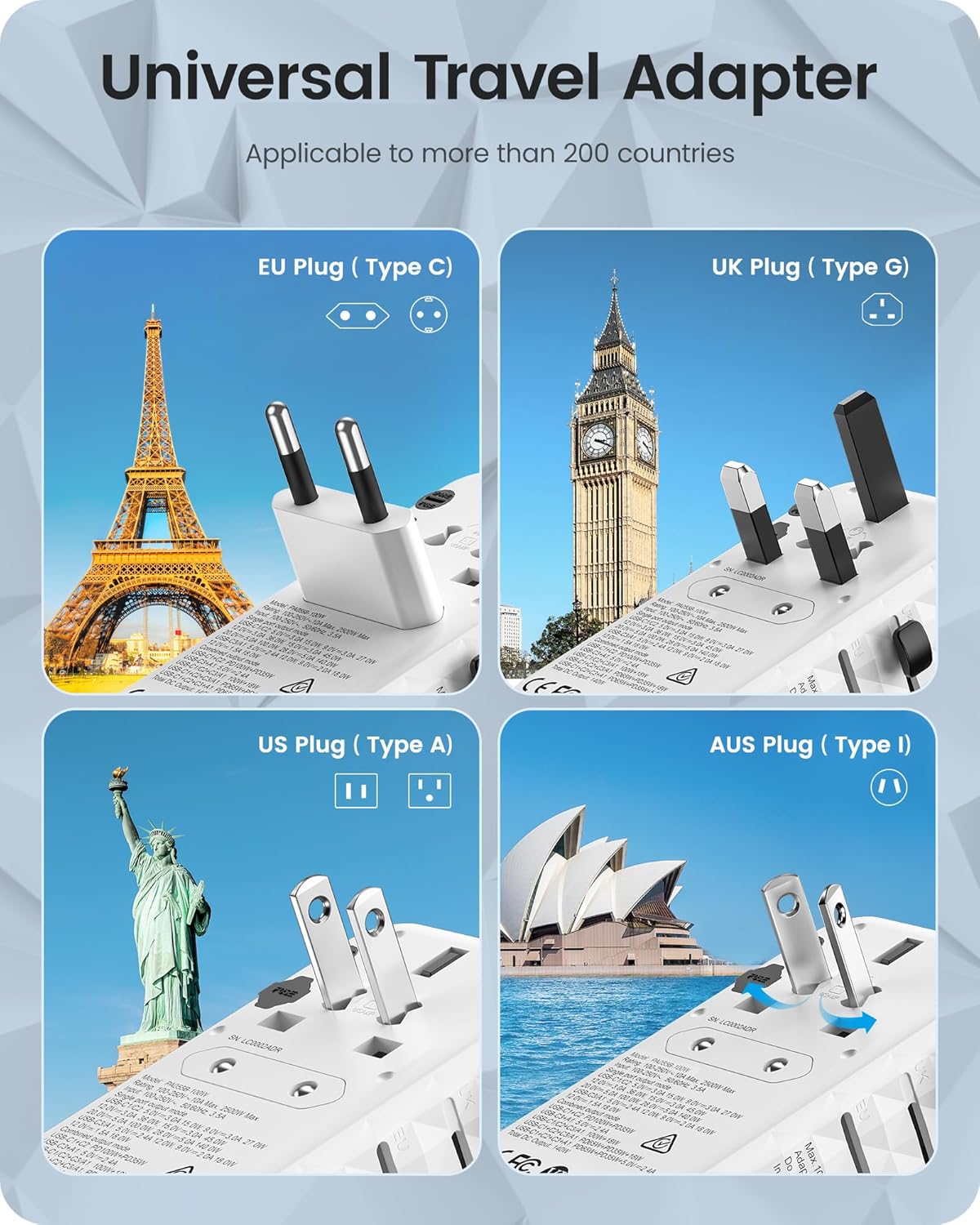 - Multi Safety Protection: Equipped with a 6-point safety system, including overload fuse, fireproof material, and short-circuit protection, this adapter ensures safe charging for all devices, providing peace of mind during your travels