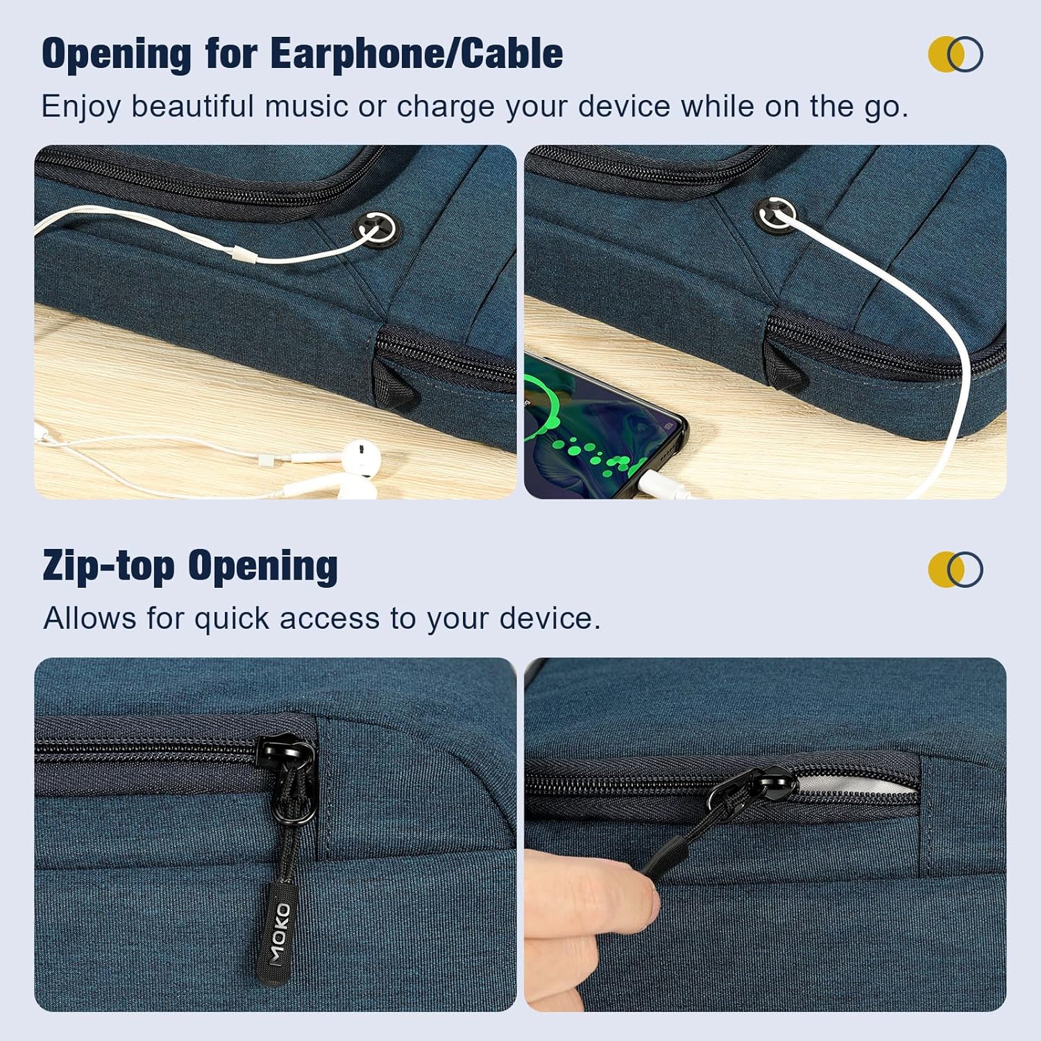 - 【Polyester Material】- Especially made of splash-Proof Polyester, which would protect your device against fluids, spills and light rain. Thicken inner lining helps safeguard the screen and body against scratches.