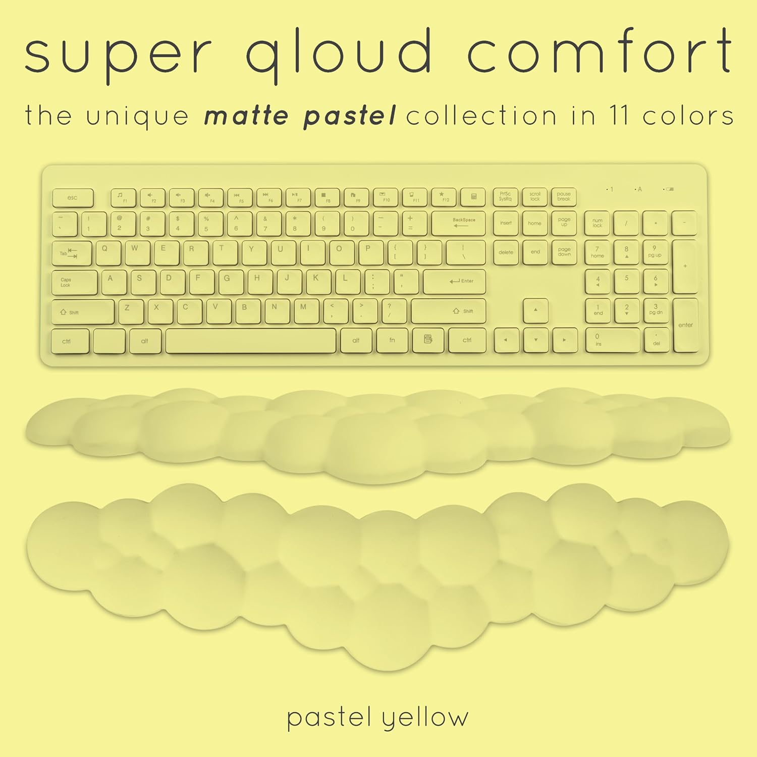 Qloud Cloud Wrist Rest Keyboard Wrist Rest for Computer Keyboard Pad, Cloud Keyboard Wrist Rest, Wrist Pad for Keyboard, Memory Foam, Non Slip Base, Comes with Mouse Pad - Yellow