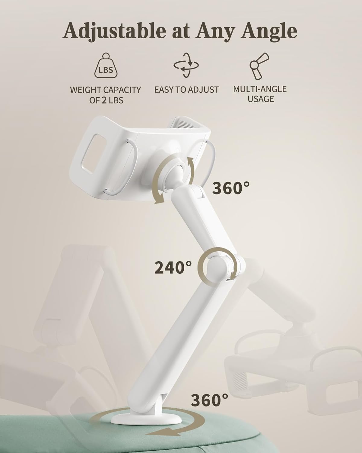 - 【Dual-Axis Design】 The kindle Colorsoft holder support arm has a dual-axis design that enables the bottom axis to rotate 360°, the middle axis to rotate 240°, and the clamp to rotate 360°, allowing users to adjust the angle according to their needs, so the phone stand can accommodate different usage scenarios, whether sitting, standing, or lying down.