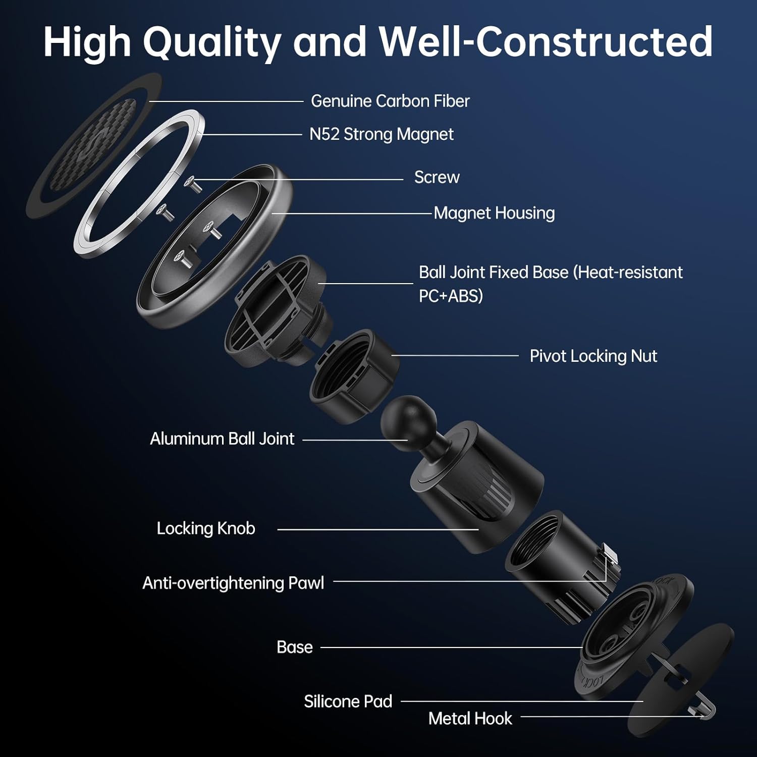 - ăGenuine Carbon Fiber CraftsmanshipăInspired by supercars, this MagSafe car mount is designed to seamlessly complement your luxury car. Unlike other car mounts on the market, SYNCWIRE's car mount is crafted from high-quality genuine carbon fiber material, seamlessly blending aesthetics and luxury, ensuring the ultimate experience in both visuals and usability.