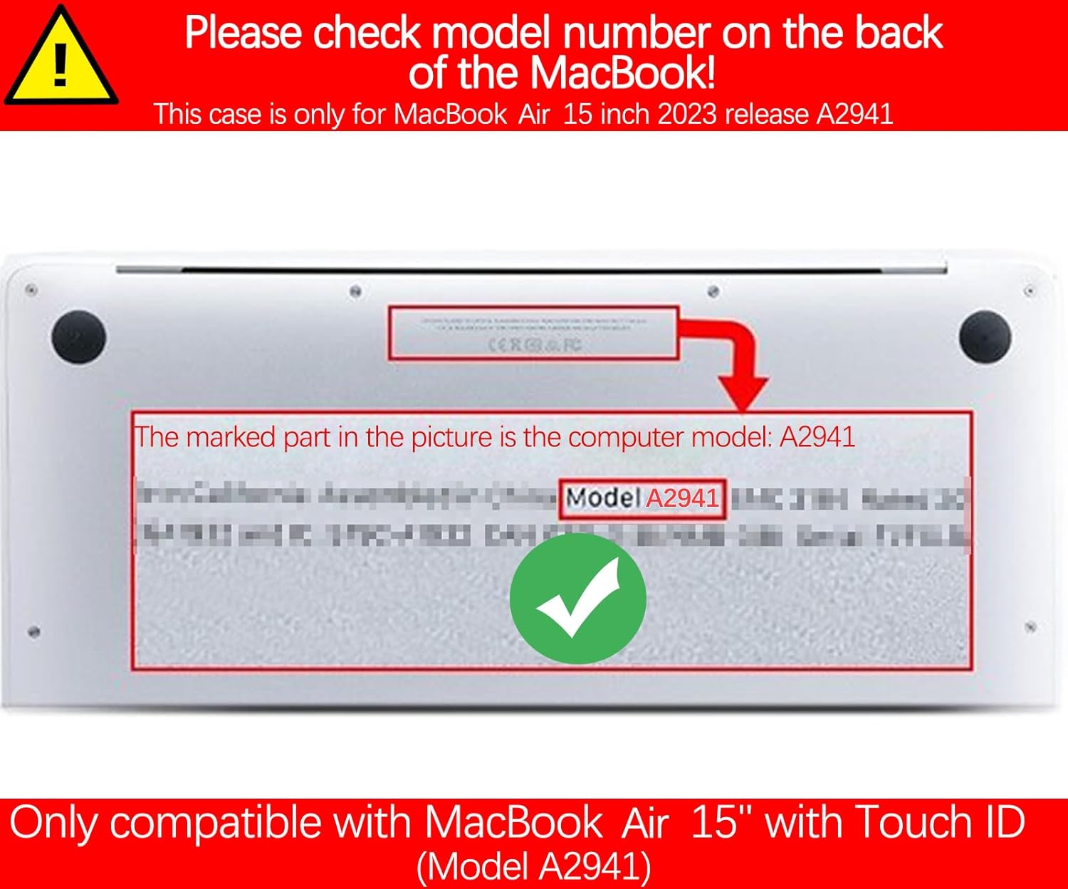 - 【Check your Model】Please kindly check the model number "Axxxx" on the back of the laptop before your purchase only compatible with MacBook Air 15 inch M4 M3 M2 2025 2024 2023 Release (Model A3241/A3114/A2941)