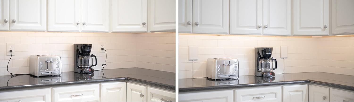 - ๐๐ฎ๐ถ๐ป ๐บ๐ผ๐ฟ๐ฒ ๐ผ๐๐๐น๐ฒ๐๐! -- Not only will you eliminate clutter, but you will also gain more usable outlets as this 3-foot inverted outlet concealer includes a 3-outlet power strips!