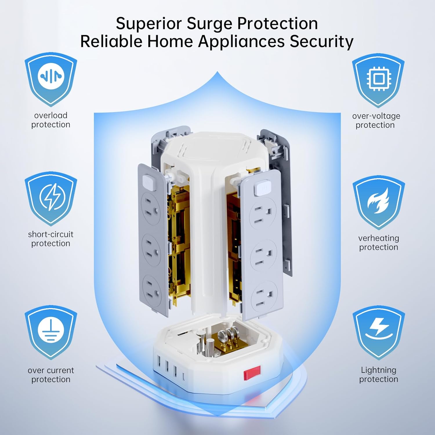 - 【What you will get?】 Includes our surge protector power strip tower, user manual, and 24/7 customer service. Perfect as a space-saving power tower for travel or daily use, this extension cord with multiple outlets replaces clunky power strips and surge protectors. Backed by lifetime tech support!