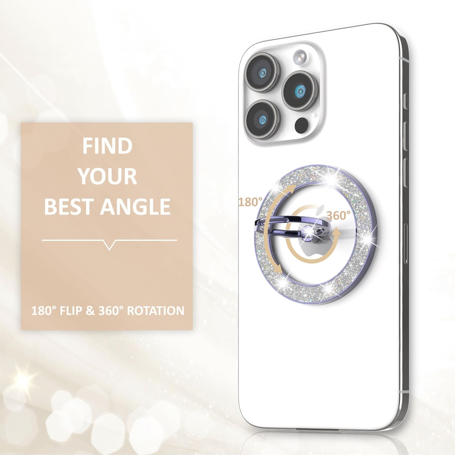 - Discover the perfect blend of style and convenience with Pikabo's newest release - the 2024 Fashion Glitter Magnetic Phone Ring. This bling magnetic phone grip stands out with its high-quality silver glittering outer ring, adding a touch of glamour to any smartphone.