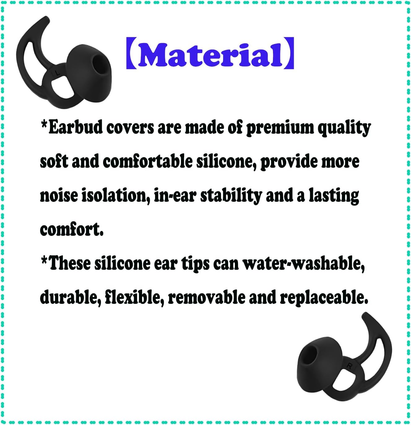 - Material:Earbud covers are made of high quality soft and comfortable silicone, provide more noise isolation, in-ear stability and a lasting comfort.