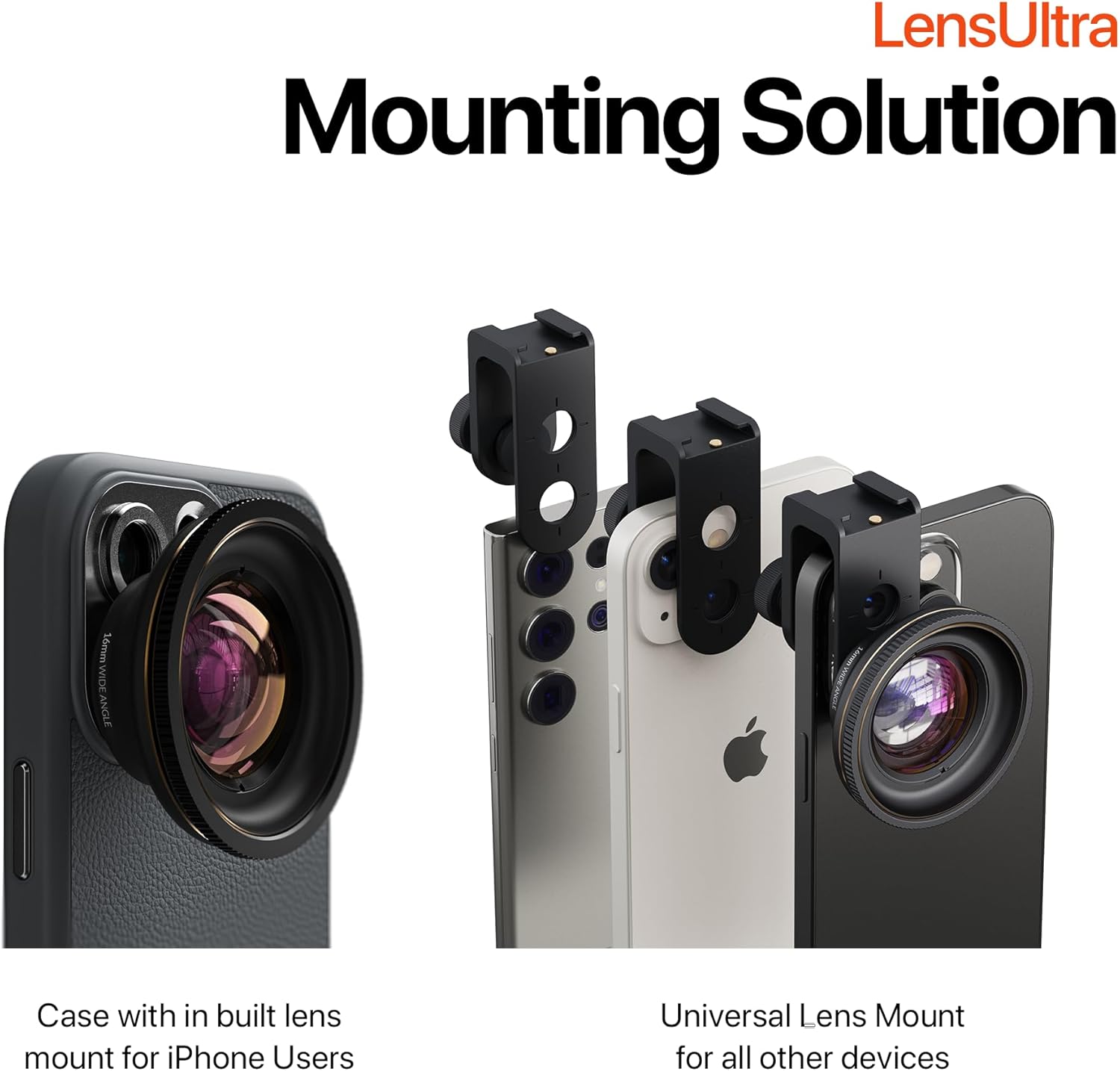 - Superior Optical Performance: Experience exceptional clarity with the LensUltra 16mm wide angle lens for iPhone and Android, designed to capture an ultra-wide field of view without compromising on detail. Utilizing your phone camera lens with your phone's highest image quality main camera, this lens delivers distortion-free wide images in high resolution, surpassing the capabilities of your built-in wide-angle camera.