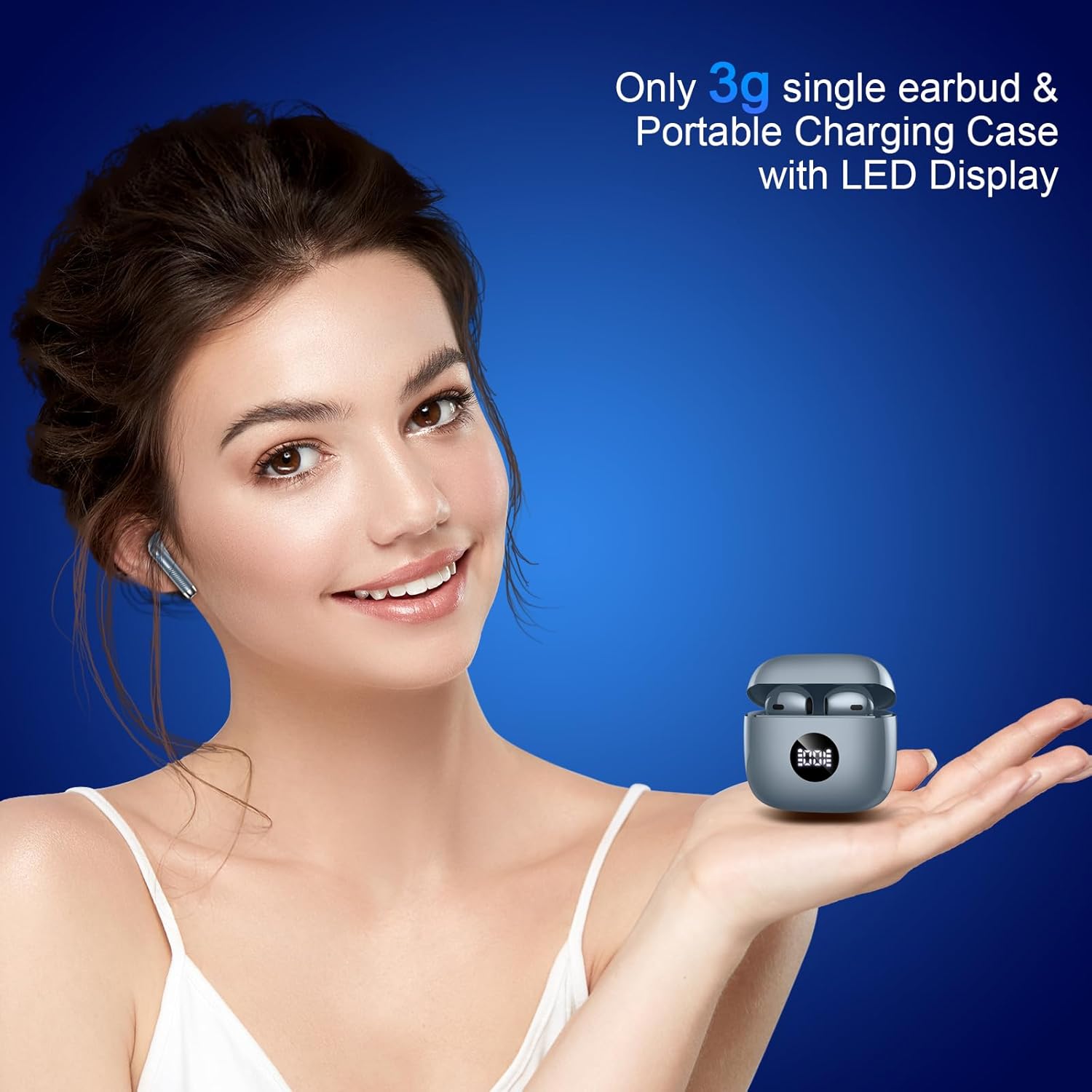 - Small size, big possibilities: 3g single earbud, pocket design charging case with LED power display, and 40H playtime: The wireless ear buds feature a portable design and an improved LED display that shows the remaining battery of each head phones and charging case in real-time. And on a full charge of 1H, your earbuds wireless Bluetooth will last up to 8H, plus the fully charged case can provide about 4 recharges for it. Enjoy vibrant sound anytime, anywhere. Perfect for indoor or outdoor.