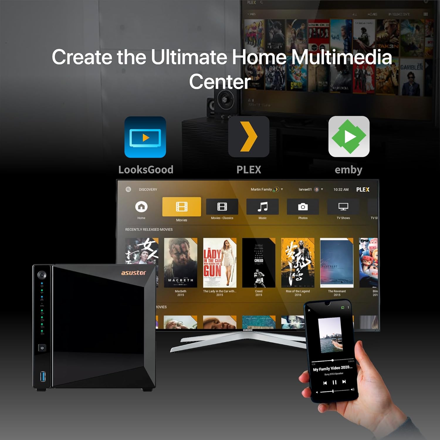 Asustor Drivestor 4 Pro Gen2 AS3304T v2, 4 Bay NAS, 1.7GHz Quad-Core, 2.5GbE Port, 2GB RAM DDR4, Best Value for Home Media Server, Network Attached Storage(Diskless)
