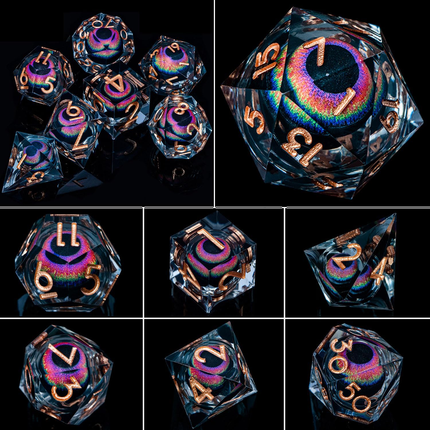 ARUOHHA DND Dragon Eye Dice Liquid Core Resin Sharp Edged Dice Set with Gift Box, RPG Role Playing Game Polyhedral Handmade D and D Dice D20 D12 D10 D8 D6 D4