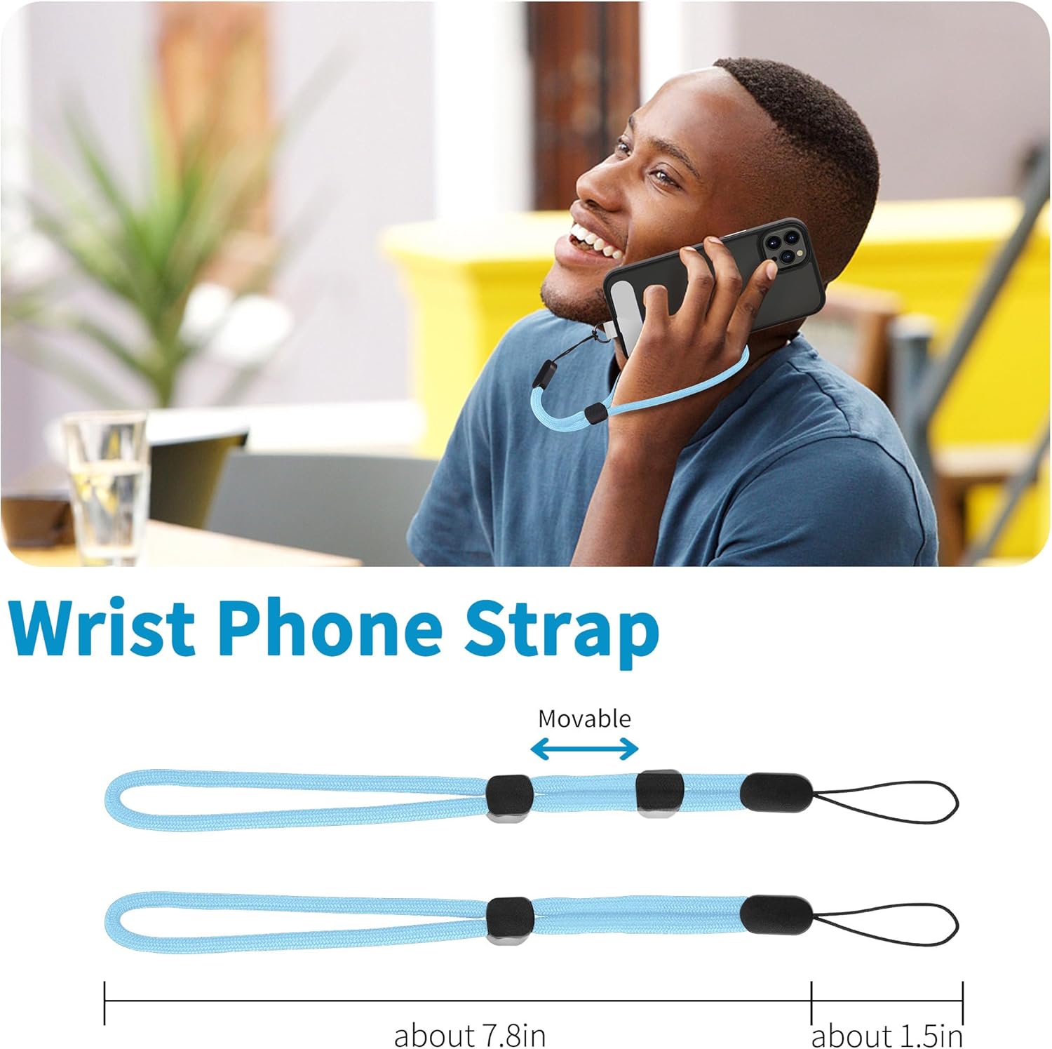 CACOE Phone Lanyard 2 Pcs-1 Pcs Adjustable Neck Strap, 1 Pcs Wrist Strap, 2 Pads, Universal Crossbody Multifuctional Cell Phone Lanyards Compatible with Most Smartphones(Light Blue)
