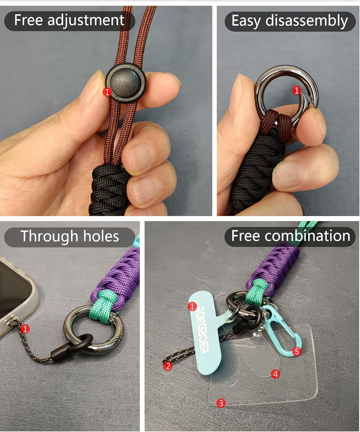 - 【Widely used】:Our adjustable cross body phone strap and wrist strap come with detachable accessories, allowing you to keep your phone, headphones, keys, sunglasses, camera, flashlight, and other valuable items safe, stylish, and convenient. Whether it's shopping, work, travel, dog walking, or taking photos, this phone strap allows you to easily adapt to different situations while maintaining your hands free