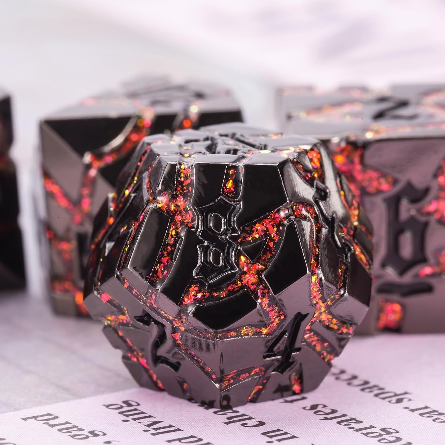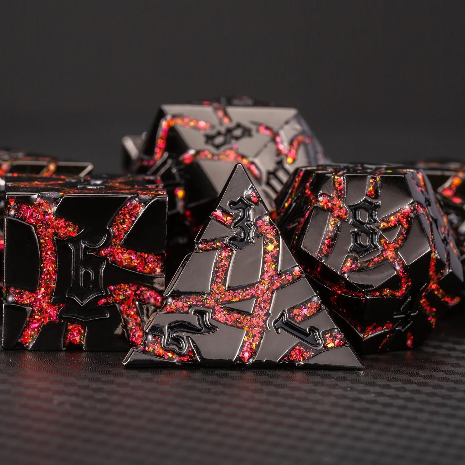 - Excellent Craftsmanship - metal dice Crackle Design design, the dice is having the cool engraving. All of these elements are carved on the metal dnd dice set with exquisite craftsmanship