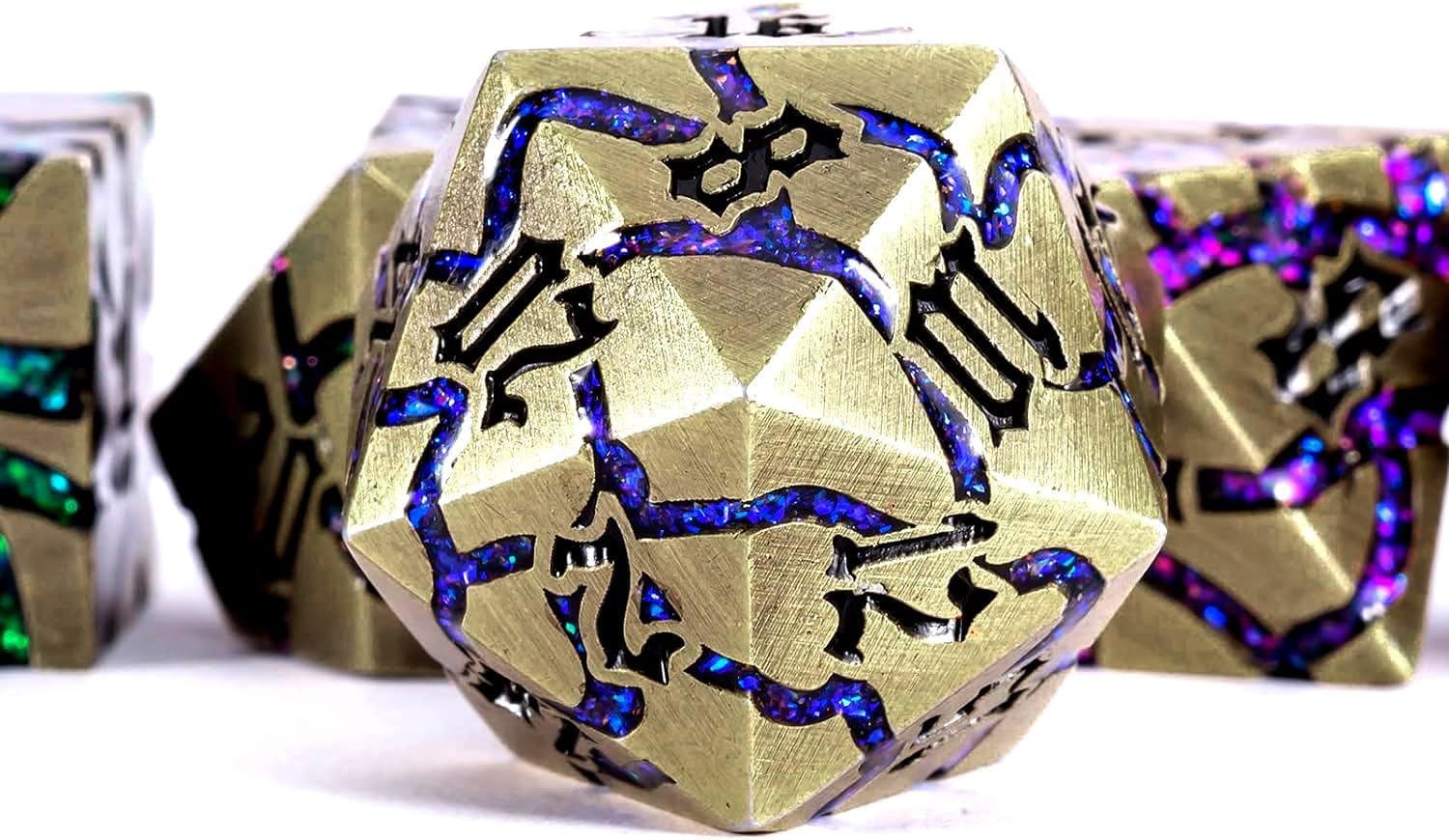 - Excellent Craftsmanship - metal dice Crackle Design design, the dice is having the cool engraving. All of these elements are carved on the metal dnd dice set with exquisite craftsmanship