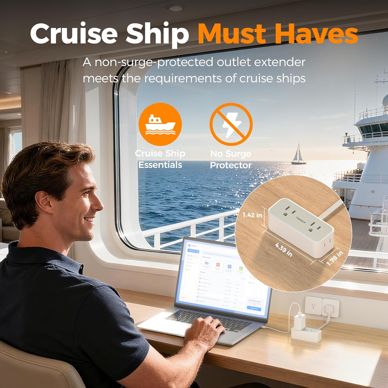 - Compact Size for Travel: With only 0.32lb lightweight design, portable design power strip with USB ports can easily fit your backpack, ideal for your travel and business trip; No surge protection, makes it be an essential Cruise Ship accessory