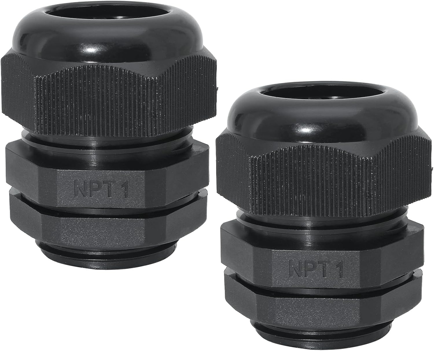 1" NPT Nylon Cable Glands, IP68 Waterproof Adjustable Cord Grip Cable Connector Strain Relief Wire Protectors for 18-25mm Cable Diameter, 2 Pcs, Black