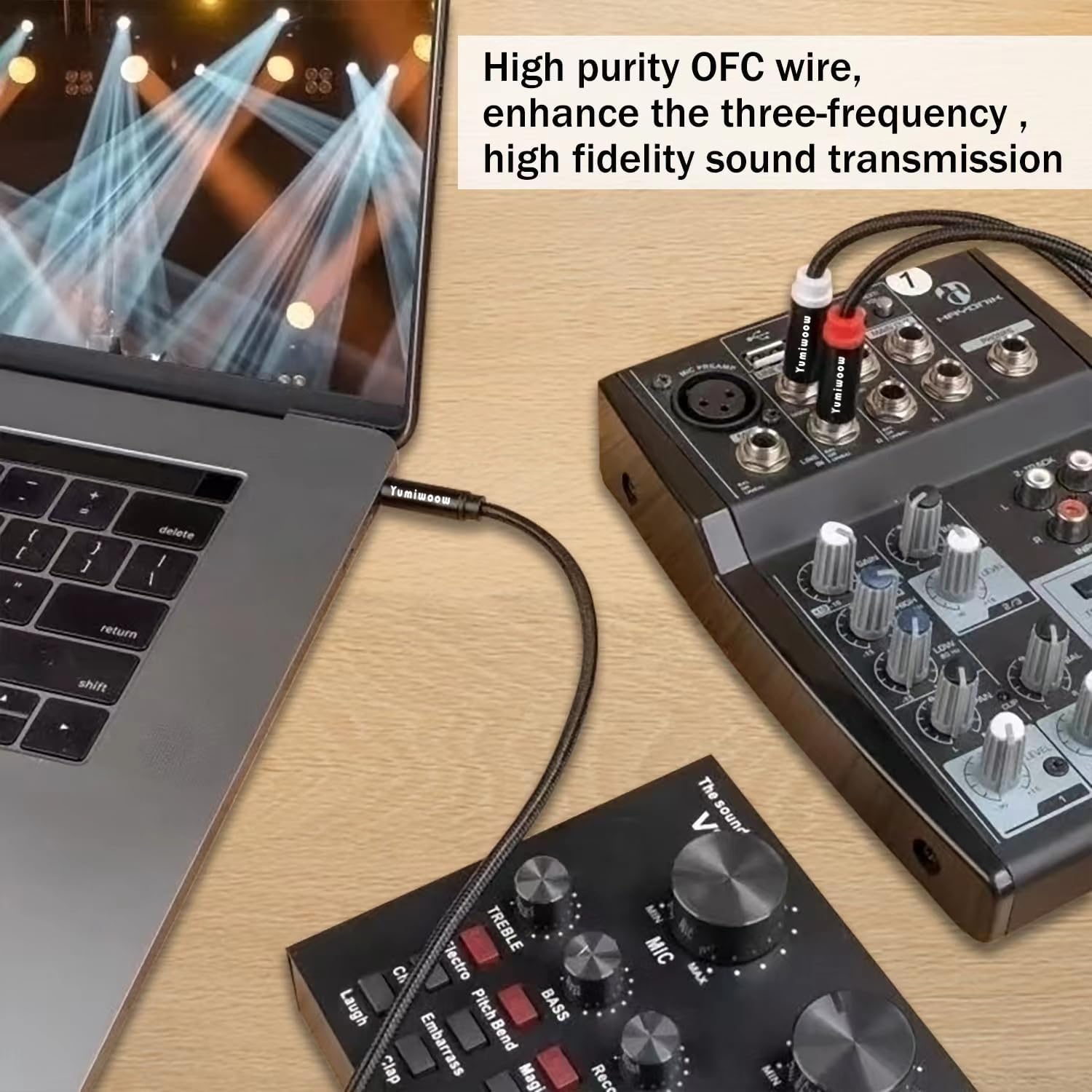 - Ideal for live performance, recording and computer multimedia settings. Yumiwoow Professional Cable! Splitter cable provides superior performance thanks to the combination of 24K gold-plated connectors and -Silver Plated Copper,Triple Shielding.Low noise resistance, for superior performance.