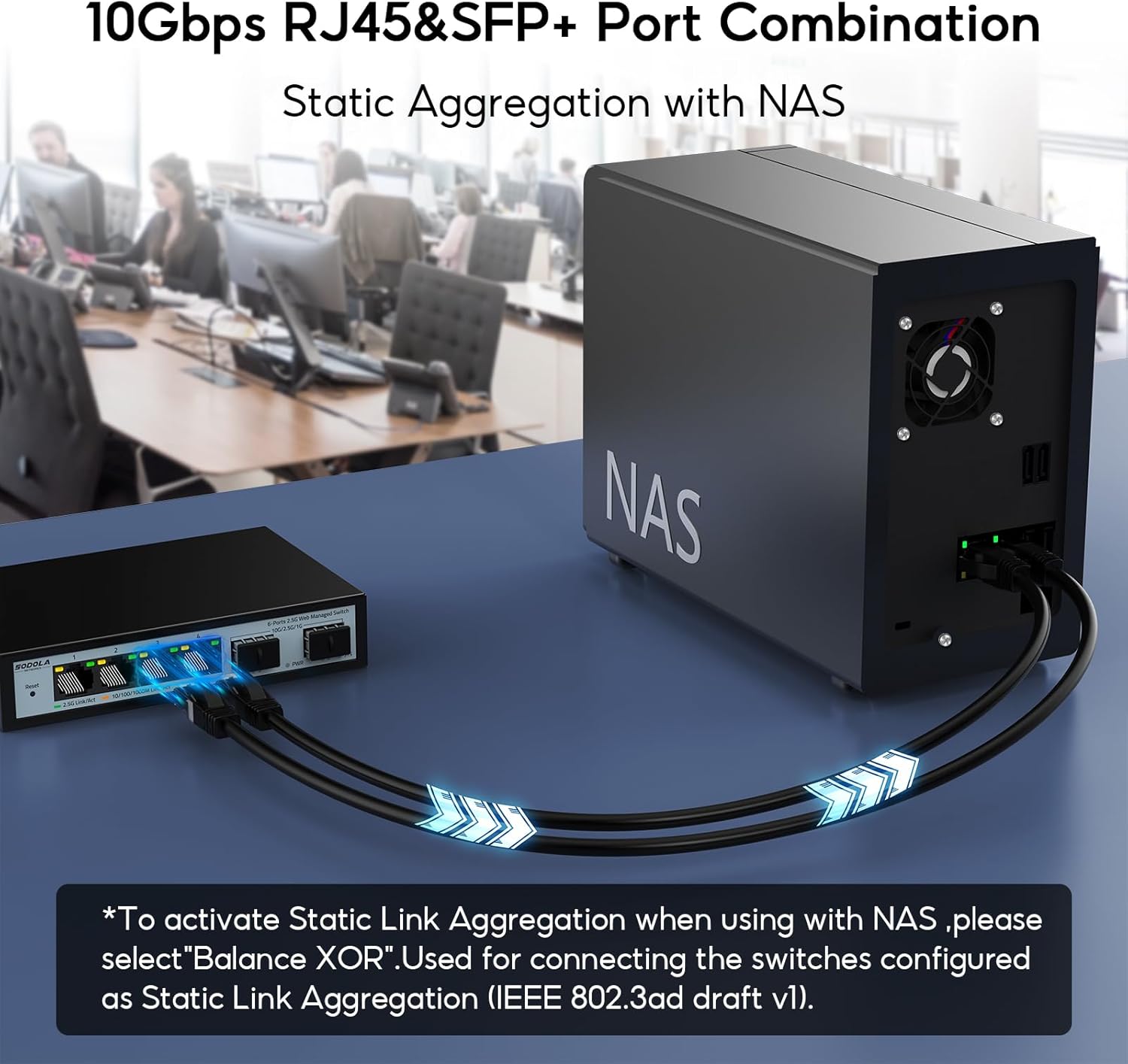 - 🌐Static Aggregation:Static aggregation boosts throughput and redundancy, ensuring seamless device connections.(Tip: Static Aggregation only, can’t be Dynamic Link Aggregation,802.3 ad)