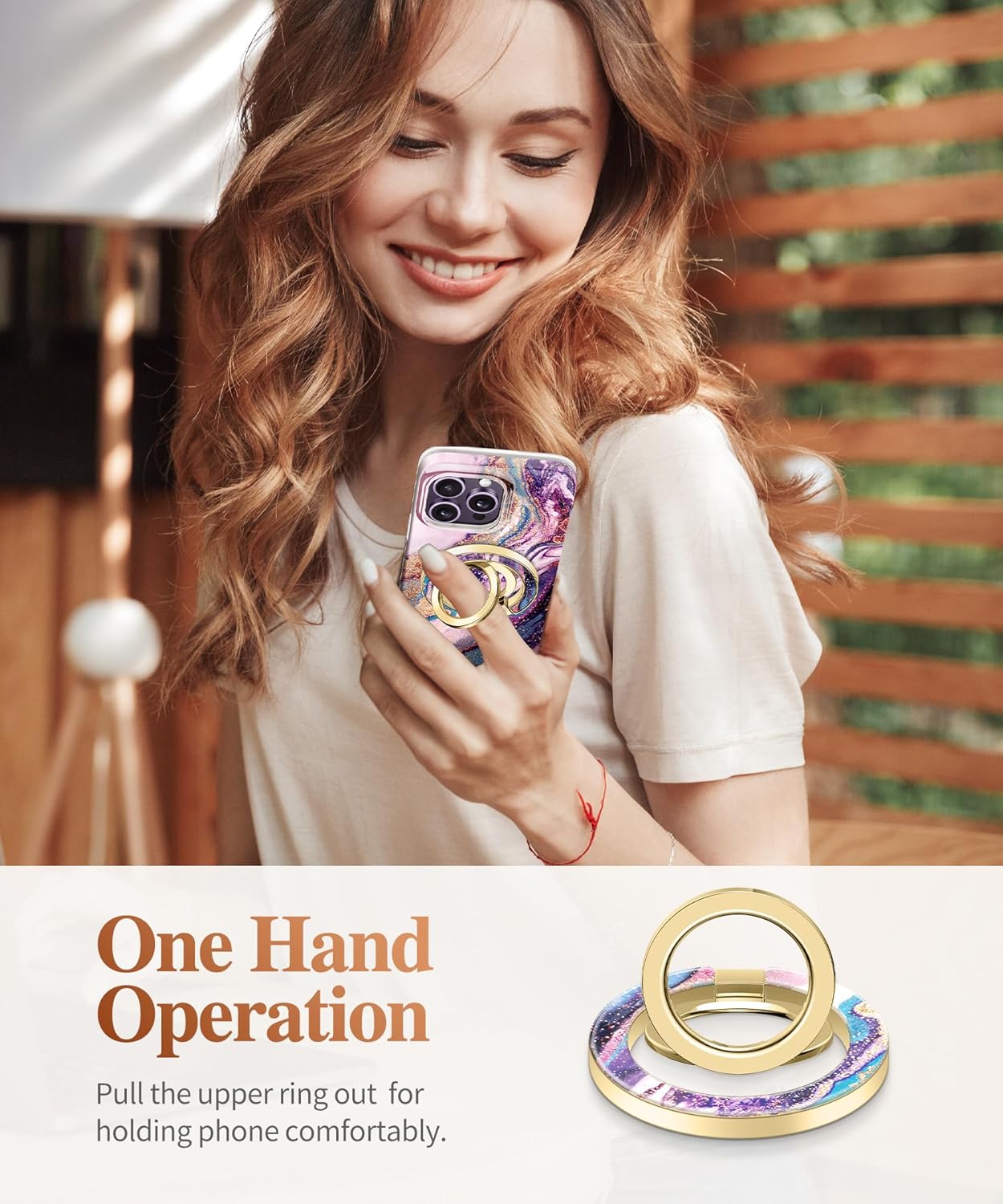 - [Premium & Comfortable Grip] The cell phone stand is made of high-quality zinc alloy metal material with electroplated coating that offers ultra-durability and unfading colors. Stylish Marble base adds style to your phone case. This ring is more ergonomically designed for a comfortable and secure grip. Perfectly adapted to various occasions of one-handed use, avoid phone drops.