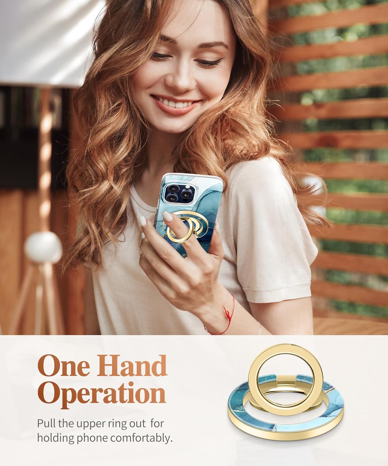 - [Premium & Comfortable Grip] The cell phone stand is made of high-quality zinc alloy metal material with electroplated coating that offers ultra-durability and unfading colors. Stylish Marble base adds style to your phone case. This ring is more ergonomically designed for a comfortable and secure grip. Perfectly adapted to various occasions of one-handed use, avoid phone drops.