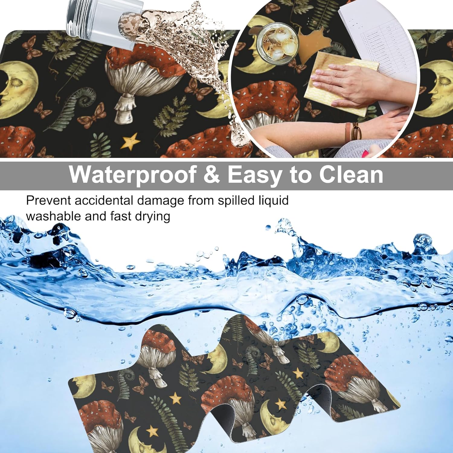 Vintage Magic Forest Desk Mat,Large Moon Amanita Mushroom and Forest Botanical Gaming Keyboard Mouse Pad,Non-Slip Rubber Base Desk Pad Thick Stitched Edges Waterproof Mousepad Mouse Mat 31.5"x11.8"