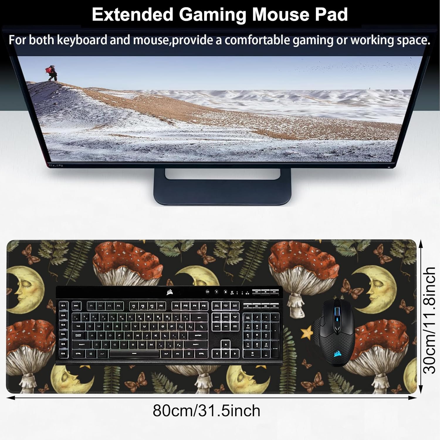 - ♥[Extended Size]The size of this mouse pad is 31.5"x11.8".It is large enough to accommodate your keyboard and mouse perfectly.What's more,you also can put your cups or other stuffs on it.The Large size ensures free movements of your mouse without any interruptions. Therefore,you don't have to continually adjust the mouse mat like the traditional one.It also can protect your desktop from any scratches or stainess.